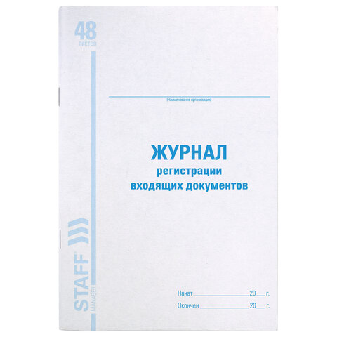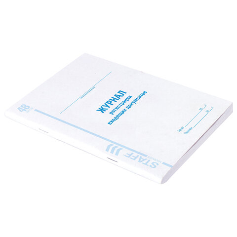 Журнал регистрации входящих документов, 48 л., картон, блок офсет, А4 (198х278 мм), STAFF, 130084