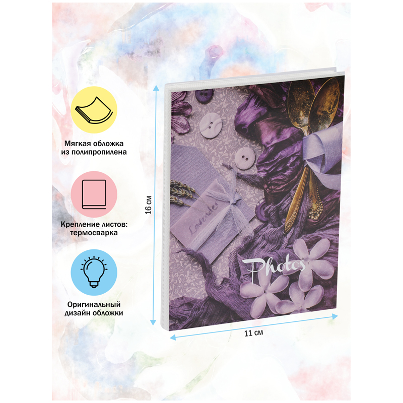 Фотоальбом ArtSpace в мягкой обложке на 36 фотографий. Размер: 100*150 мм. Страницы изготовлены из полипропилена. Яркий и удобный, фотоальбом ArtSpace сохранит лучшие воспоминания на долгие годы, а также станет прекрасным подарком. • Размер фото: 100*150 мм; • Количество фото: 36; • Количество листов: 18.
