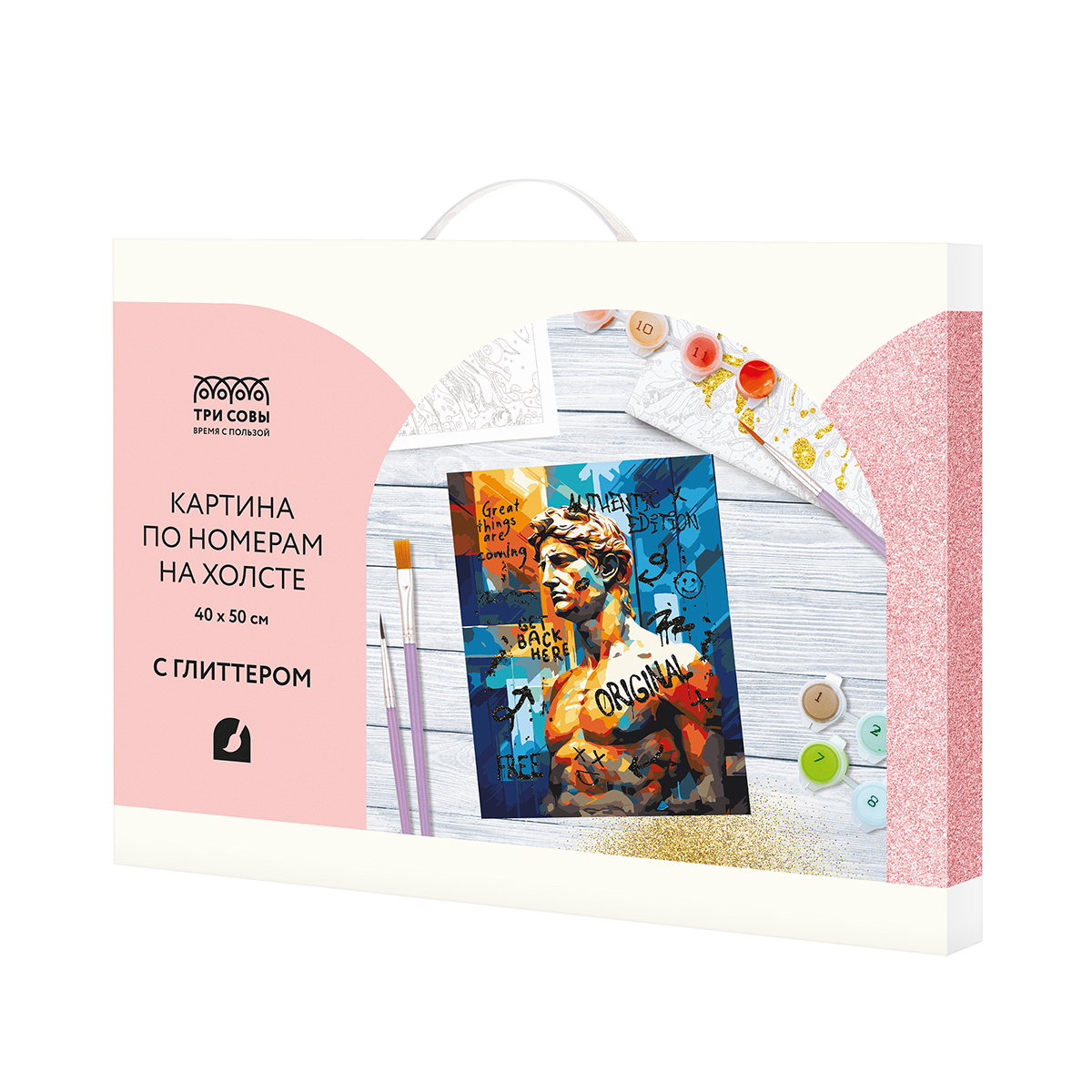 Картина по номерам на холсте с глиттером «Арт» бренда «ТРИ СОВЫ» поможет раскрыть творческие способности. Отделка холста глиттером создает эффект сияния и придает картине очаровательную уникальность. В набор входят: ∙ холст с глиттером на деревянном подрамнике размером 40*50 см с нанесенным контуром, пронумерованный в соответствии с номерами красок. Технология точной разбивки сюжета картины на разные цветовые оттенки гарантируют правильность исполнения полотна; ∙ 24 акриловые краски с высокой укрывистостью на водной основе в пронумерованных баночках; ∙ 3 баночки с глянцевым защитным лаком; ∙ 3 кисти из эластичного нейлонового волокна; ∙ тренировочный лист; ∙ 1 тюбик геля с блестками; ∙ картонный мольберт; ∙ крепления на стену. Данный метод рисования способствует развитию внимания и концентрации, аккуратности, пониманию концепции построения фигуры через цветовые оттенки, развивает чувство вкуса. Процесс рисования доставит обладателям набора большое эстетическое удовольствие, а созданные своими руками картины помогут украсить интерьер дома или станут прекрасным подарком. Упакована в красочную картонную коробку.
