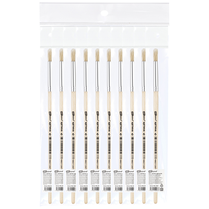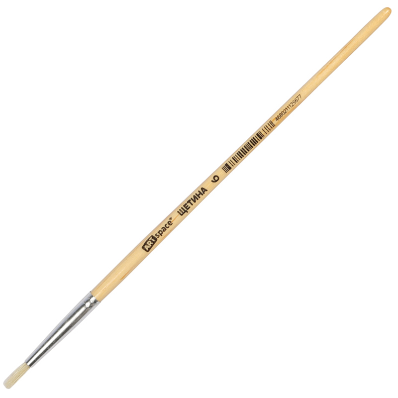 Художественные кисти ArtSpace изготовлены из качественной щетины. Изделие даже после продолжительного использования не теряет форму. Ещё одним важным свойством является расщеплённый кончик, который способствует хорошей наполняемости кисти и ровному нанесению краски. Кисть круглой формы с короткой ручкой из дерева предназначена для работ с «тяжёлыми красками»: маслом, акрилом, темперой, гуашью. Натуральные кисти из щетины - отличный инструмент как для детского и школьного творчества, так для хобби и профессиональной живописи. Ручка кисти изготовлена из берёзы и покрыта глянцевым лаком. • Волос: щетина; • Номер: 6; • Форма кисти: круглая; • Тип ручки: короткая; • Материал ручки: дерево.
