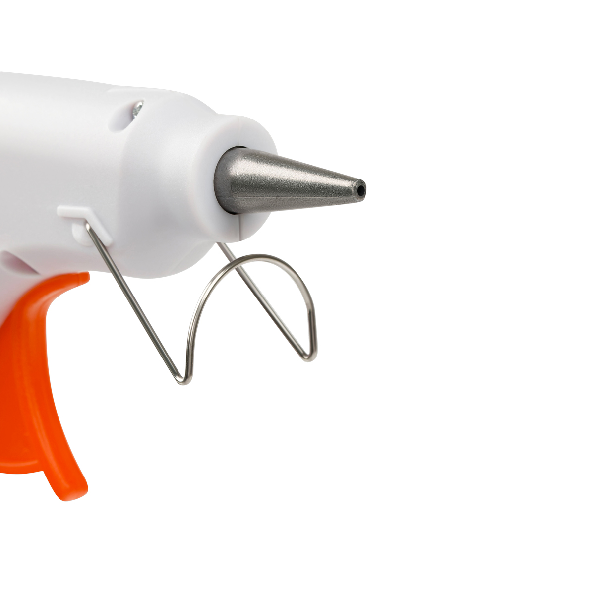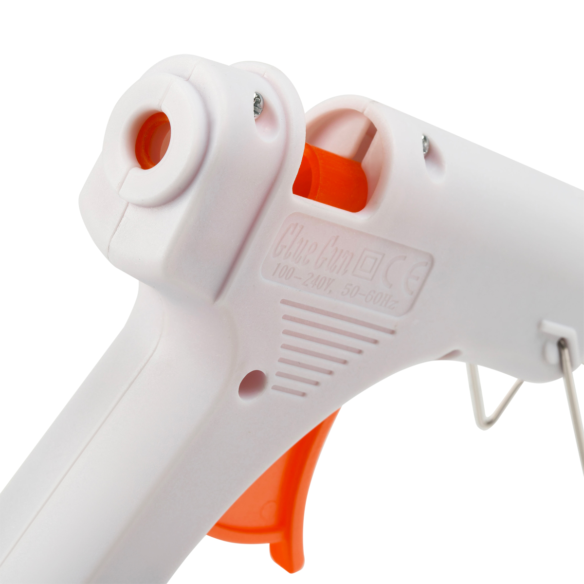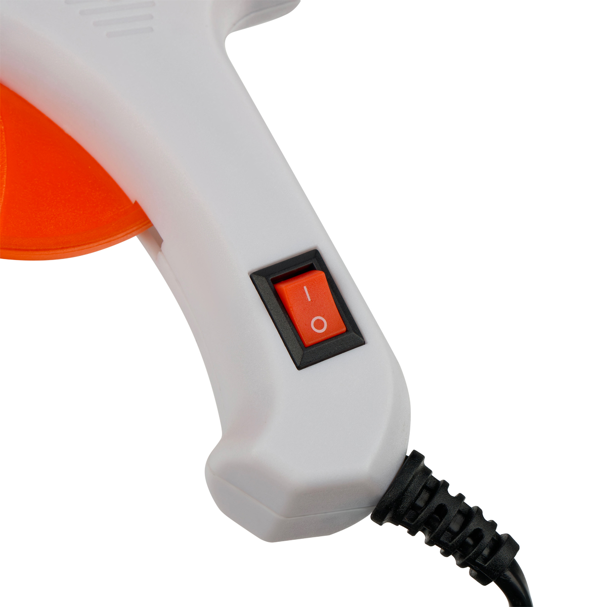Пистолет клеевой 40 Вт большой (в блистере) предназначен для прочной фиксации поверхностей с помощью расплавленной клеевой массы. Заправляется он специальным клеевым стержнем диаметром 11 мм. Корпус клеевого пистолета изготовлен из ударопрочной пластмассы и имеет скобу для надежной установки в нерабочем положении. Принцип работы: клеевый стержень плавится в металлической камере с помощью нагревательного устройства и для точного дозирования при нажатии на курок подаётся из сопла на склеиваемую поверхность. Мощность пистолета в 40 Вт позволяет очень быстро разогреть клеевой стержень и получать удовольствие от быстрой и бесперебойной работы. С его помощью вы сможете склеить: дерево, пластик, резину, кожу, стекло, металлы (их лучше перед работой разогревать феном), ткань, пенопласт, керамику, картон, бумагу, цветы или что-то другое. Используется как в домашних условиях, так и на производстве: для монтажа электрических плат, декорирования, изготовления упаковочной и сувенирной продукции, при прокладке кабеля сетей