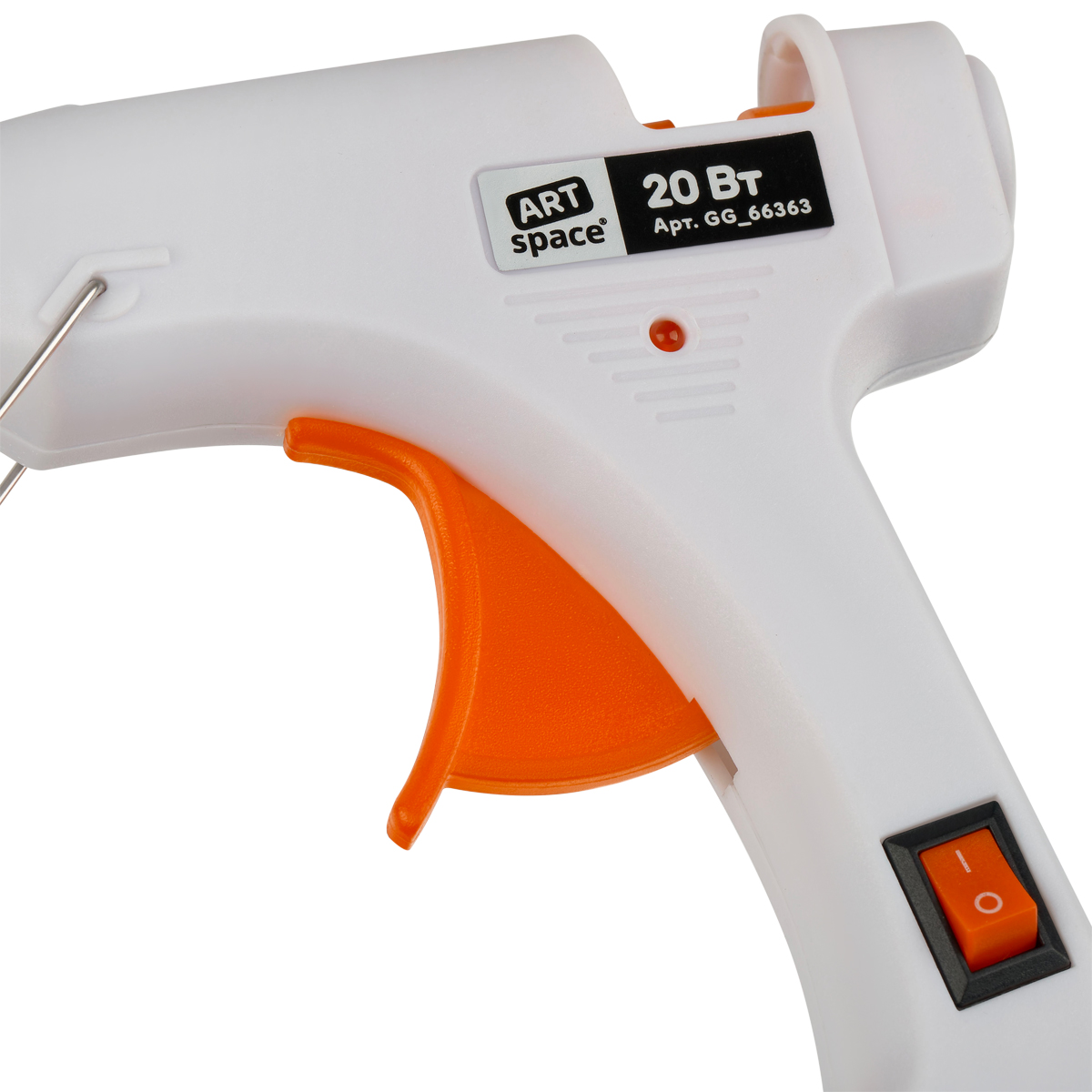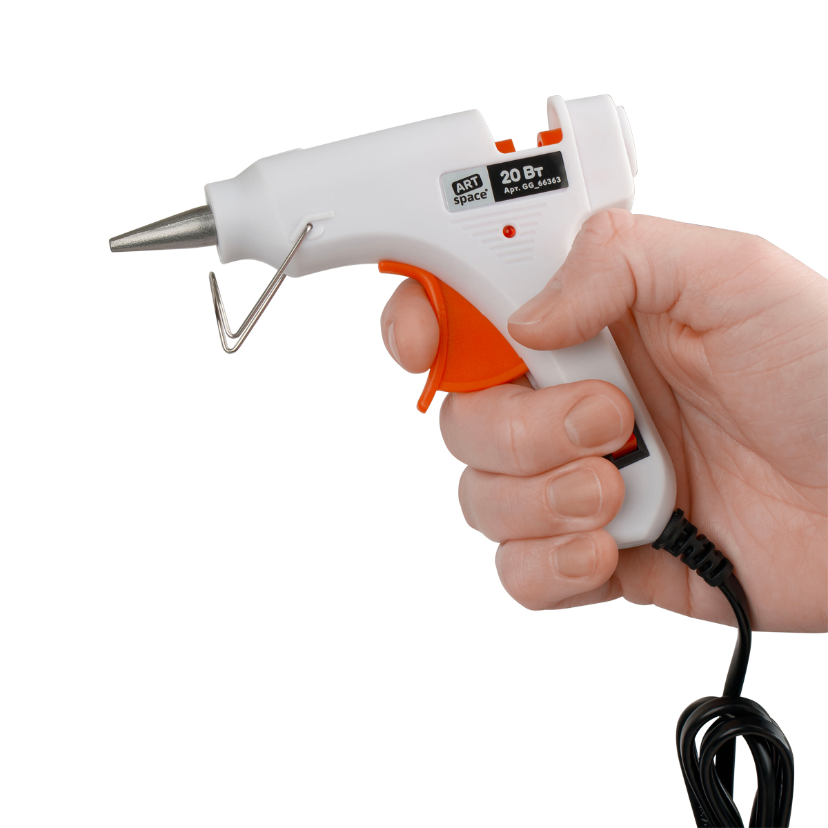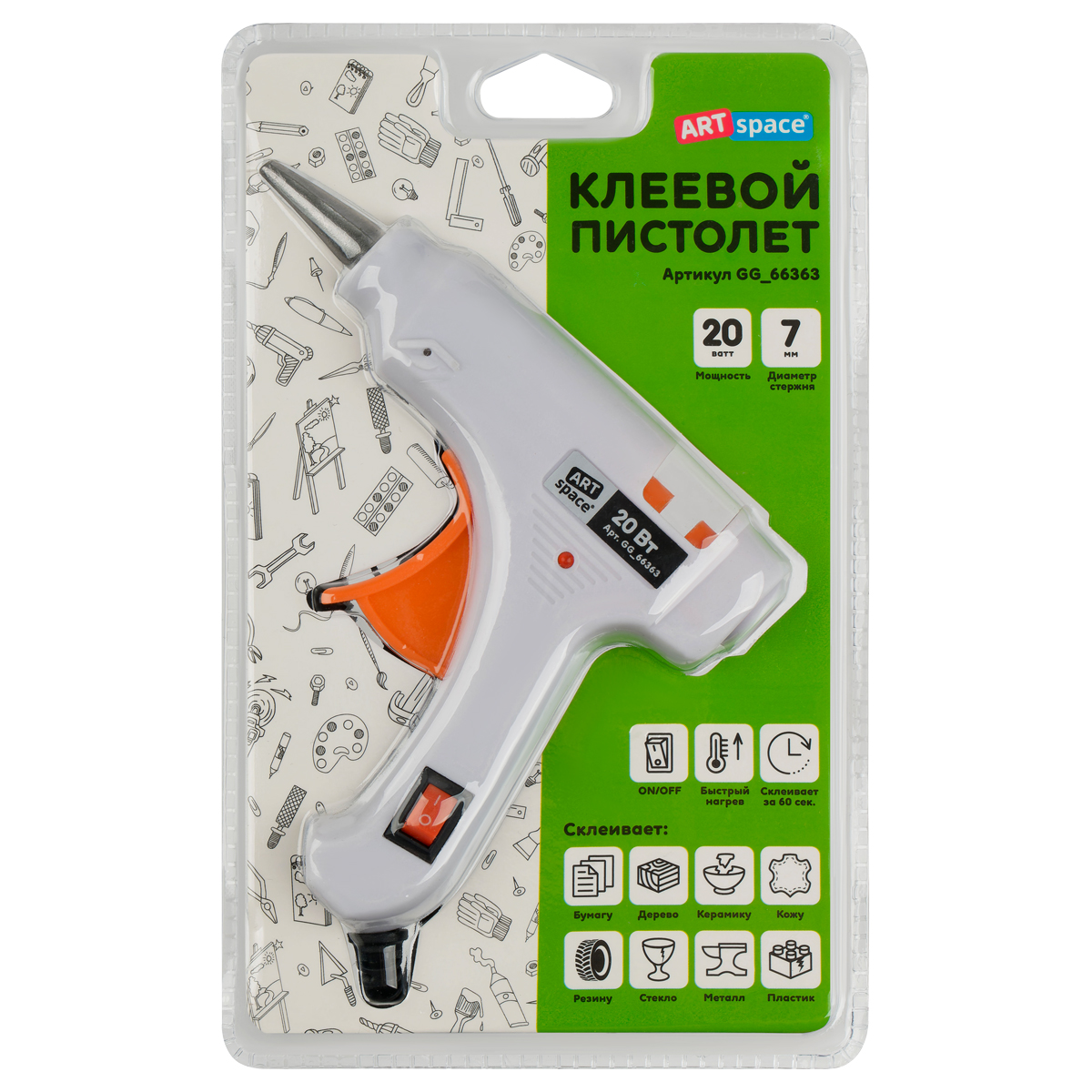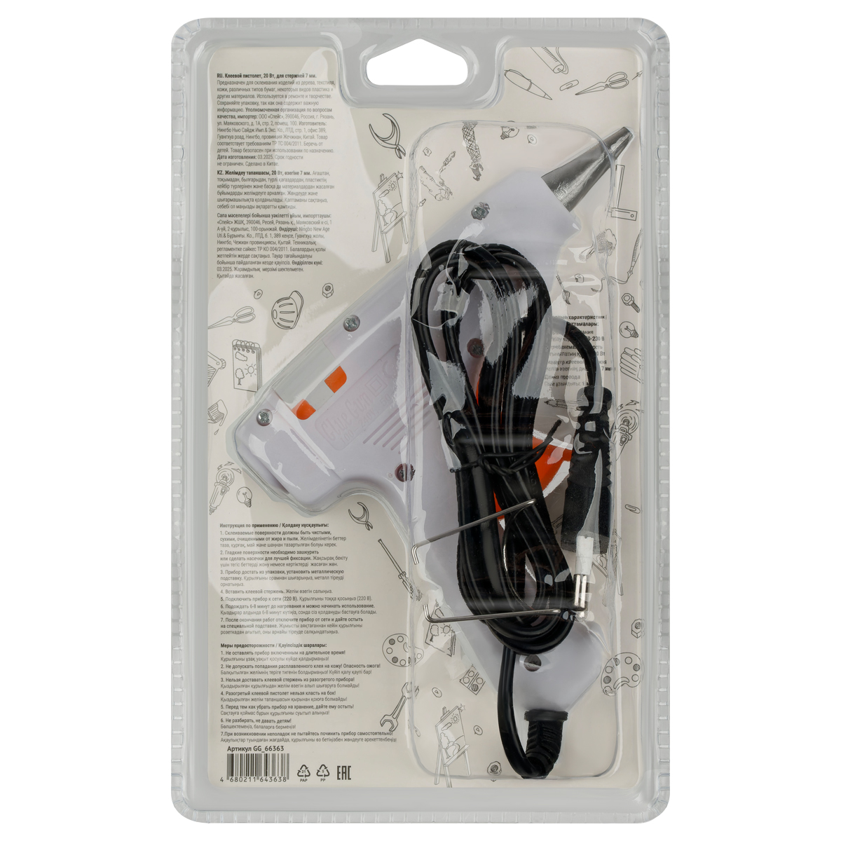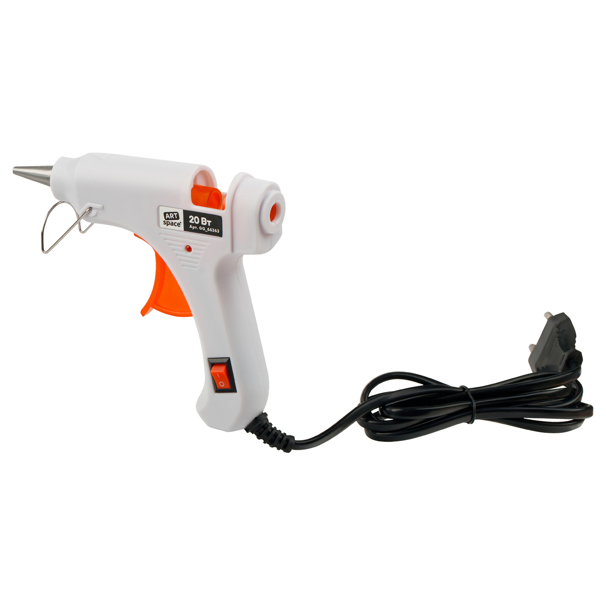Пистолет клеевой 20 Вт (в блистере) предназначен для прочной фиксации поверхностей с помощью расплавленной клеевой массы. Заправляется он специальным клеевым стержнем диаметром 7 мм. Корпус клеевого пистолета изготовлен из ударопрочной пластмассы и имеет скобу для надежной установки в нерабочем положении. Принцип работы: клеевой стержень плавится в металлической камере с помощью нагревательного устройства и для точного дозирования при нажатии на курок подаётся из сопла на склеиваемую поверхность. С его помощью вы сможете склеить: дерево, пластик, резину, кожу, стекло, металлы (их лучше перед работой разогревать феном), ткань, пенопласт, керамику, картон, бумагу, цветы или что-то другое. Используется малый клеевой пистолет в основном в быту, там где нужно что-то подклеить в не большом объеме: для декорирования, изготовления упаковочной и сувенирной продукции. Удобен для работы с малогабаритными изделиями.