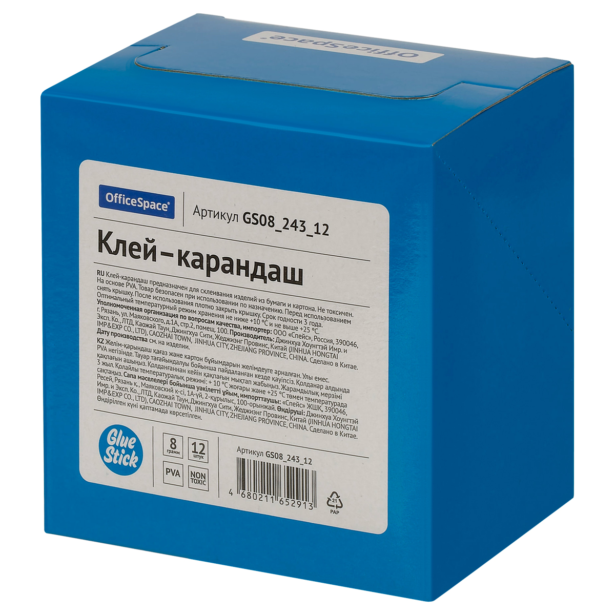 Канцелярский клей-карандаш OfficeSpace незаменим для использования в школе, офисе и доме. В наборе 12 штук клея для бумаги и картона по 8 гр. Продукт на ПВА основе не токсичен, не имеет резкого и неприятного запаха, легко наносится тонким прозрачным слоем, не пачкает руки и не оставляет следов. Плотный колпачок защитит клей от высыхания. Это лучший выбор как для детского творчества, так и для повседневной работы с документами. Школьный клей в стике можно использовать для учебы, творчества и рукоделия. Он подходит как для мальчиков, так и для девочек, поместится в ранце или рюкзаке и всегда будет под рукой благодаря компактному размеру. Данный клей для поделок отлично подойдет для учебных заданий в школе: склеивания аппликаций, фотографий, для изготовления приглашений, открыток, скрапбукинга. Он удобен для точных работ и склеивания различных деталей. Срок годности - 3 года. Вес: 8 г. Основа клея: PVA Назначение: бумага, картон, фотобумага Дизайн: Классический Форма корпуса: круглая