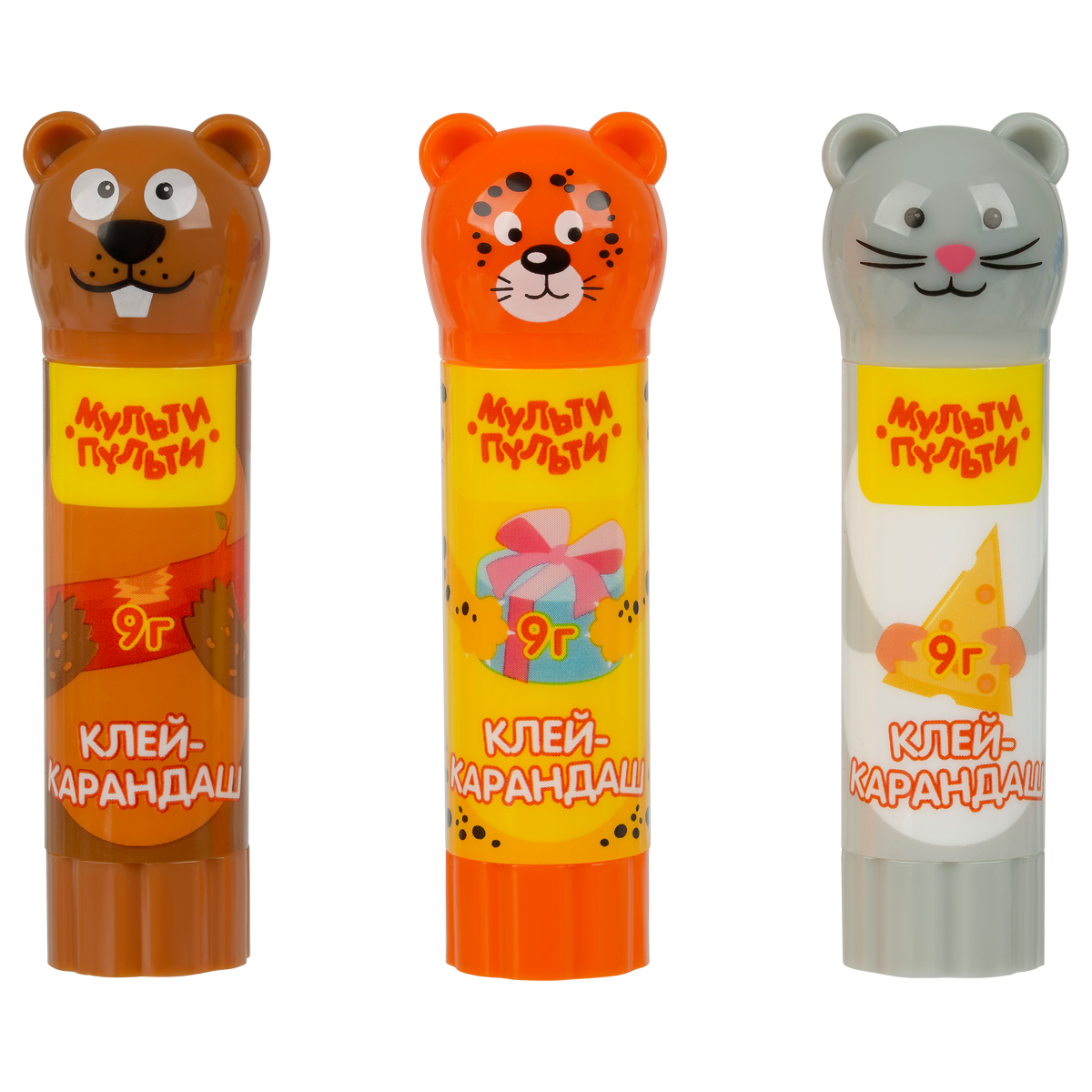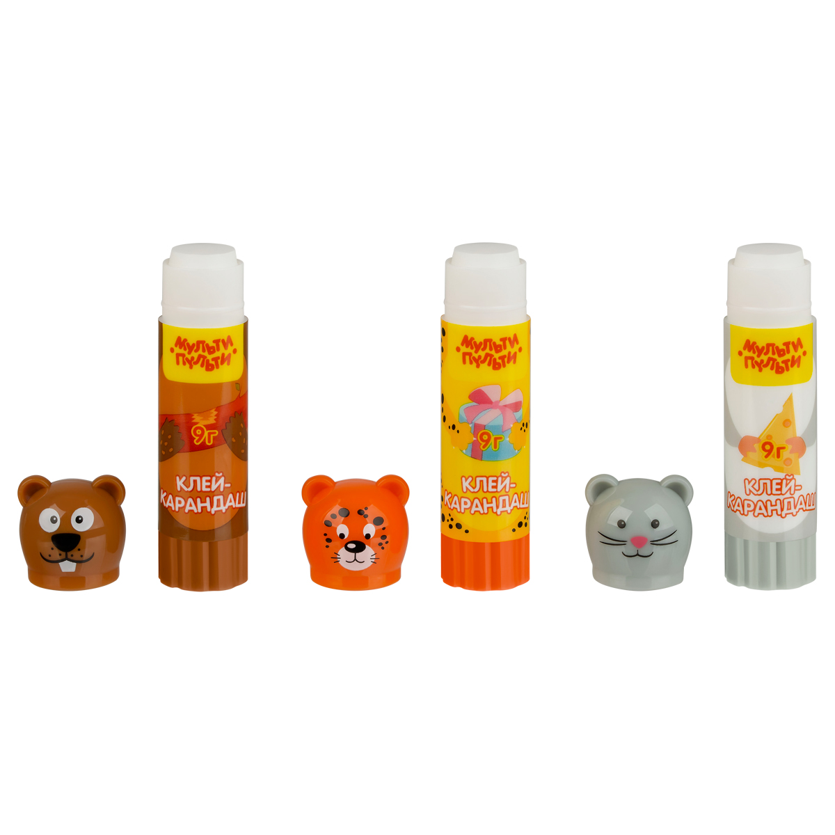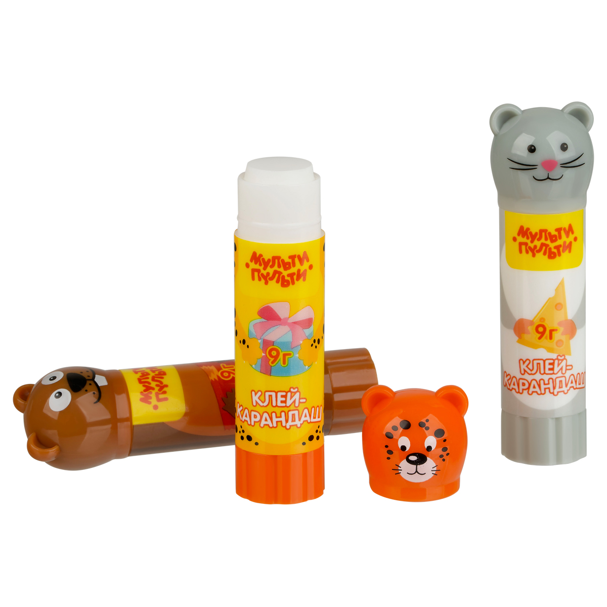 Клей-карандаш Мульти-Пульти "Зверята: Бобер, Леопард, Мышь", 09г, колпачок в форме животного GS_8301
