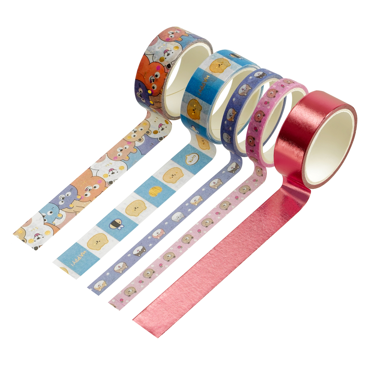 Декоративные клейкие ленты MESHU предназначены для упаковки подарков, оформления поделок, элементов интерьера и скрапбукинга. Открытки, альбомы, ежедневники, подставки, цветочные горшки, подсвечники, рамки и много другое может преобразиться с декоративными лентами MESHU. Яркие и современные дизайны сделают процесс творчества увлекательным, а результат впечатляющим. А качественная клеевая основа позволит надёжно зафиксировать ленту и быть уверенным в долговечности декора. • Ширина ленты: 15мм, 7мм; • Длина намотки: 3000 мм; • Материал: бумага; • Количество в наборе: 5.