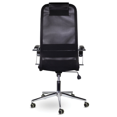 Кресло компьютерное для руководителя Helmi HL-E16 Content из комбинированных материалов обивки – классика жанра: модель на металлическом каркасе с хромированными элементами. Максимальная нагрузка составляет 120 кг. Газпатрон 2 класса по стандарту DIN EN 16955. Высокая «сетчатая» спинка с анатомичным изгибом обеспечивает идеальную поддержку, отличную вентиляцию и позволит сохранить чувство свежести в «жаркие» рабочие дни. Механизм качания с возможностью фиксации кресла в рабочем положении. Каркас – немонолитный, материал набивки – вспененный полиуретан, материал обивки сиденья – ткань черная, спинки – ткань-сетка черная с подголовником из экокожи, подлокотники пластиковые с хромированными элементами, крестовина – хромированный металл. Гарантийный срок – 12 месяцев. • Материал обивки: ткань/сетка/экокожа; • нагрузка: до 120 кг; • Материал крестовины: хромированный металл; • Механизм качания: с возможностью фиксации кресла в рабочем положении.