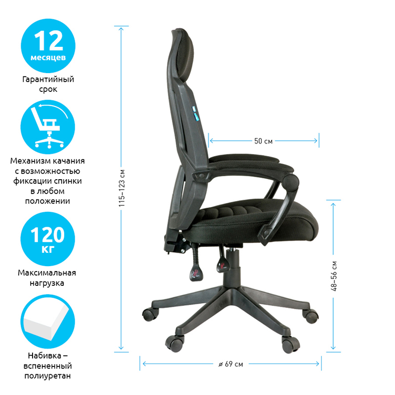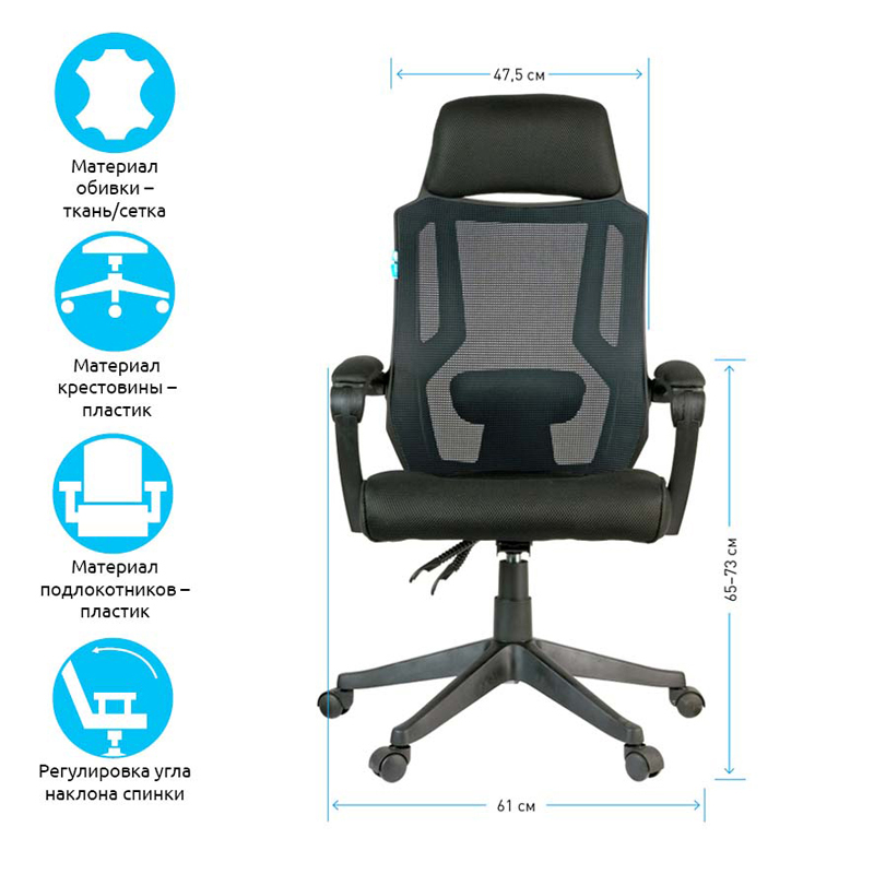 Надежная и практичная модель. Оптимальное решение для персонала или руководителя среднего звена. Оснащено механизмом качания с регулировкой под вес и фиксацией в вертикальном положении.
