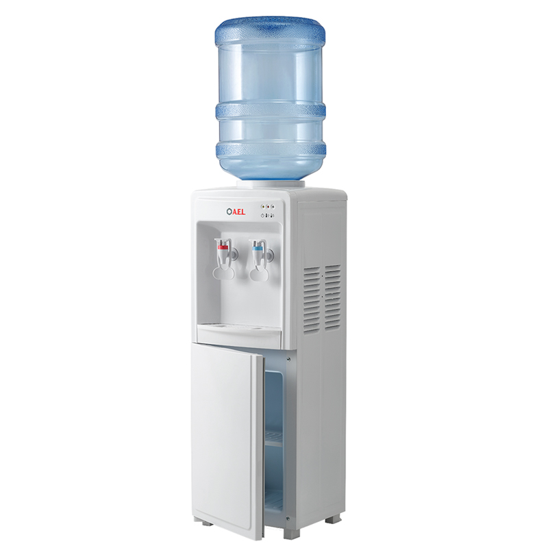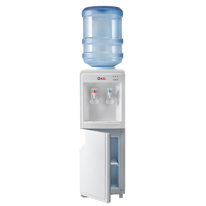 Напольный кулер с электронным охлаждением и шкафчиком для продуктов. Аккуратный дизайн и малые габариты этого аппарата позволят эргономично вписаться в Ваш офис. Шкафчик на 9 литров (≅140х320х200мм). Краны «нажим чашкой».