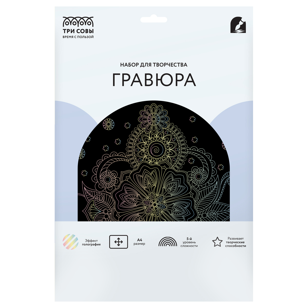 Гравюра — это увлекательный, популярный, а главное несложный вид творчества, который будет интересен не только детям, но и взрослым. Работа над гравюрой развивает творческие способности, внимательность, а также помогает избавиться от напряжения и снять стресс. Интересные современные дизайны отлично впишутся в интерьер дома. Упаковку можно использовать в качестве рамки, которую вы можете приклеить или повесить на стену. Состав набора: основа размером А4, штихель, крепление на стену. Набор упакован в картонный конверт с европодвесом. ВНИМАНИЕ! Товар не предназначен для детей в возрасте до 3-х лет. Набор содержит острый предмет. Использовать только под присмотром взрослых.