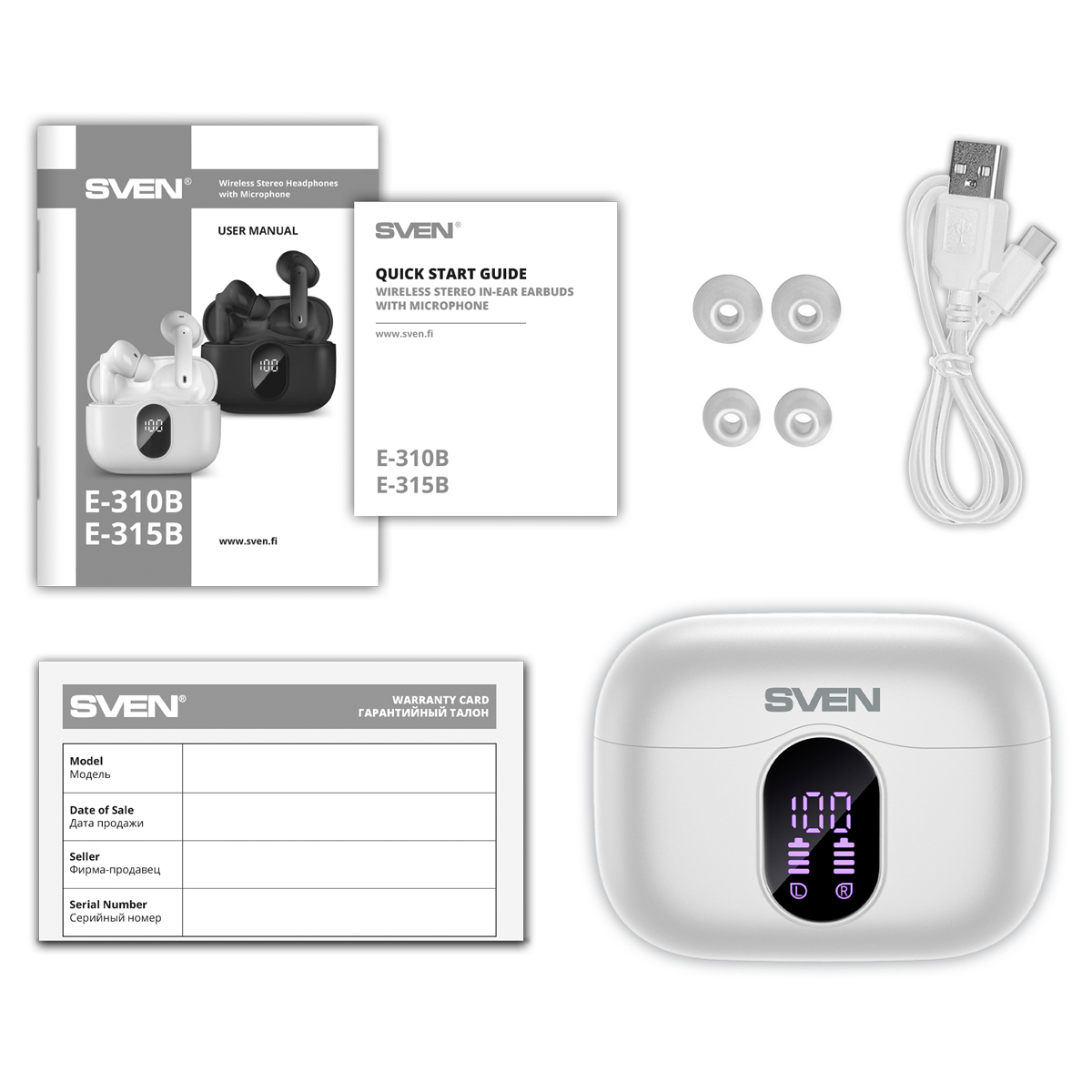 С первого взгляда становится ясно, что перед нами максимально «заряженное» устройство, у которого есть абсолютно все — даже собственный LED-дисплей с индикацией заряда на лицевой стороне кейса. Дизайн при этом выдержан в максимально строгом и лаконичном стиле, что позволит наушникам органично сочетаться с любым стилем одежды. Один из главных признаков по-настоящему флагманских наушников – это, конечно, наличие приложения для мобильных гаджетов, которое дает доступ ко всем параметрам и настройкам. SVEN E-310B поддерживают управление через ПО Smart Life, предлагаемое в версиях для устройств под управлением iOS и Android. С его помощью можно полностью управлять гарнитурой, используя удобный и понятный интерфейс – все настройки всегда под рукой в смартфоне пользователя. В частности, с помощью Smart Life можно настроить звучание под свой вкус и настроение с помощью встроенного эквалайзера, управлять воспроизведением музыки, выбирать режимы шумоподавления, а также включать «игровой режим», помогающий снизить задержку, добиться идеальной синхронизации изображения и звука как в играх, так и при просмотре видео. Отдельного упоминания заслуживает функция поиска, которая может выручить владельцев SVEN E-310B в сложной ситуации. Найти потерянные где-то в помещении наушники можно с помощью воспроизводимого ими высокочастотного сигнала, который хорошо слышен. Ну а если наушники забыты где-то вне дома, поможет возможность отображения их последнего положения на карте. Форма наушников обеспечивает максимально комфортное ношение. При этом, на удобстве сделан особый акцент — сенсорные кнопки управления поддерживают не только управление воспроизведением, но и регулирование громкости. Подумали разработчики и о тех пользователях, которые привыкли слушать музыку во время разного рода активностей — наушники защищены от водяных брызг и капель пота (IPx4), а потому могут использоваться даже на самой тяжелой тренировке или пробежке под легким дождем. Подключение гарнитуры к другим гаджетам осуществляется с помощью современного Bluetooth 5.4, а за звук в них отвечают крупные динамики диаметром 13 мм — такое редко встречается даже в самых передовых на сегодняшний день решениях. Они позволяют наушникам выдавать звук премиального уровня и обеспечивать качественное звучание в широком частотном диапазоне, в том числе — воспроизводить плотный и яркий бас. Максимальное погружение в воспроизводимый материал обеспечивает система активного шумоподавления (ANC) с несколькими режимами работы, позволяющими комфортно слушать музыку или подкасты на средней громкости как посреди большого офиса, так и в шумном общественном транспорте. Контролировать происходящее вокруг, быстро пообщаться с кем-нибудь или услышать нужную информацию поможет режим «звуковой прозрачности», в котором микрофоны гарнитуры транслируют окружающие звуки в динамики. У микрофонов есть собственная система шумоподавления (ENC), которая позволит без проблем общаться по телефону и записывать голосовые сообщения даже в шумной обстановке. Встроенные аккумуляторы внутриканальных наушников позволяют им работать до 6 часов от одного заряда — хватит и на тренировку, и на дорогу на работу. При этом периодическая подзарядка от кейса позволяет достичь общей автономности до 26 часов — часто заряжать SVEN E-310B не при