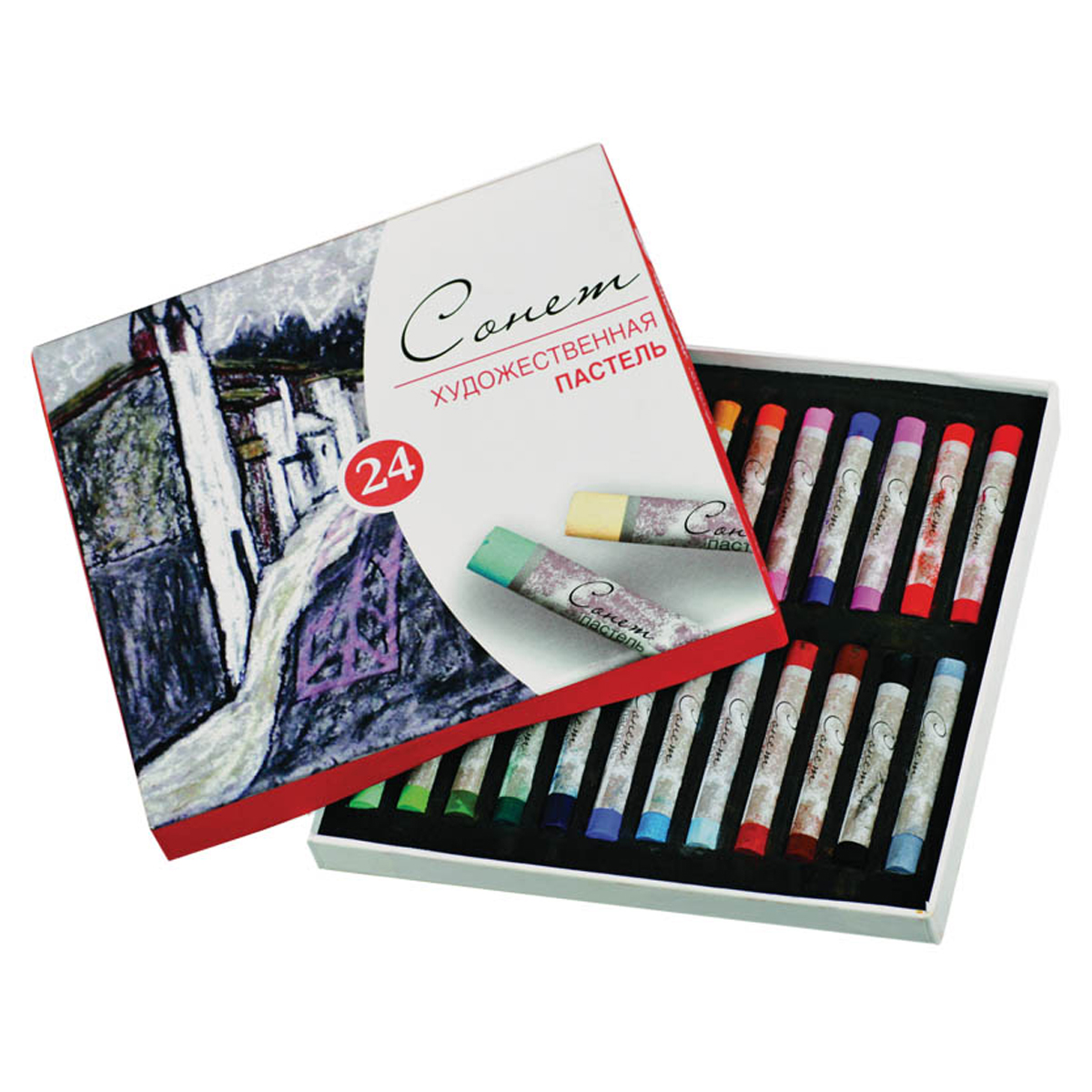 Художественная пастель «Сонет» предназначена для живописи и декоративных работ. Произведена по особой технологии с применением тонкодисперсных пигментов, благодаря чему пастельный штрих мягкий, бархатистый, легко ложится и растушевывается на основе. Чистые интенсивные цвета пастели отлично смешиваются между собой, позволяют добиваться плавных переходов и градиентов. Кроме традиционного применения, ее можно сочетать с другими материалами (чернилами, гуашью, акварелью, акрилом, карандашами), а также размывать водой или рисовать по мокрой поверхности. Представлена в наборах по 12, 24, 36 и 48 цветов, а также двумя тематическими наборами "Графика" и "Земляные тона". Состав набора: белая, неаполитанская желтая, лимонная, желтая телесная, желтая средняя, охра желтая, оранжево-желтая, розовая телесная, фиолетовая светлая, лиловая, киноварь, алая, изумрудная, травяная зеленая, оливковая, зеленая темная, берлинская лазурь, ультрамарин, церулеум, синяя телесная, сиена жженая, умбра жженая, черная, серая пейна. Технические характеристики: - назначение: художественные работы; - тип: сухая; - твердость - мягкая; - форма мелка: круглая; - цвета набора: ассорти 24 штуки; - упаковка - картонная коробка; - страна производства - Китай. Хранить в сухом месте при температуре от 0 до 35 °С. Срок годности не ограничен. Обязательной сертификации не подлежит.