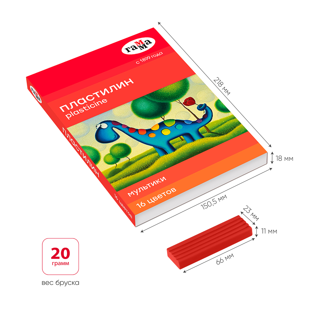 Пластилин Гамма "Мультики", 16 цветов, 320г, со стеком, картон. упак. 280027
