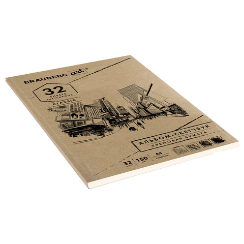 Скетчбук BRAUBERG ART "CLASSIC" для эскизов и графики. Внутренний блок - бумага белого цвета с гладкой фактурой. Подходит для работы с широким спектром графических материалов (уголь, соусы, карандаши и прочие).