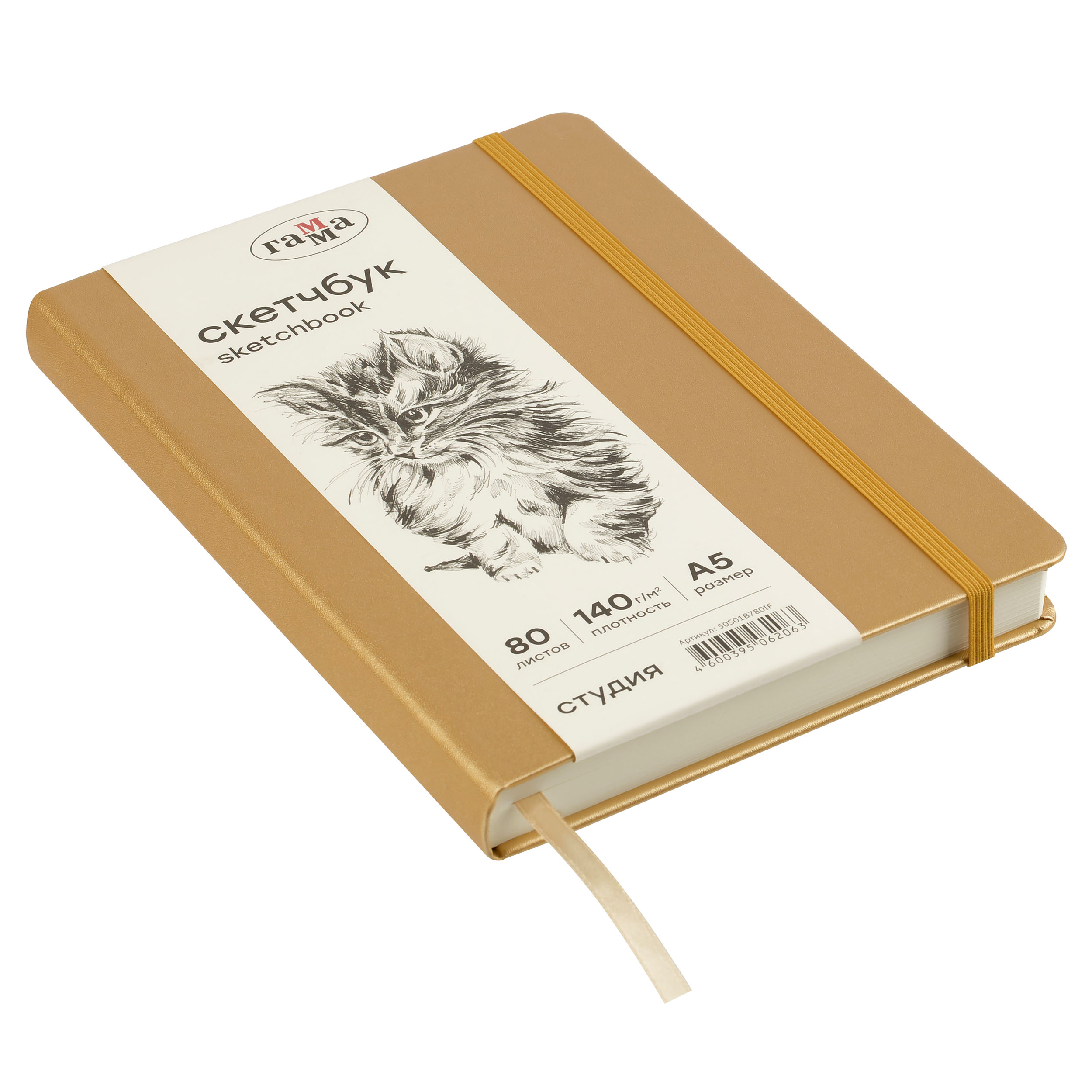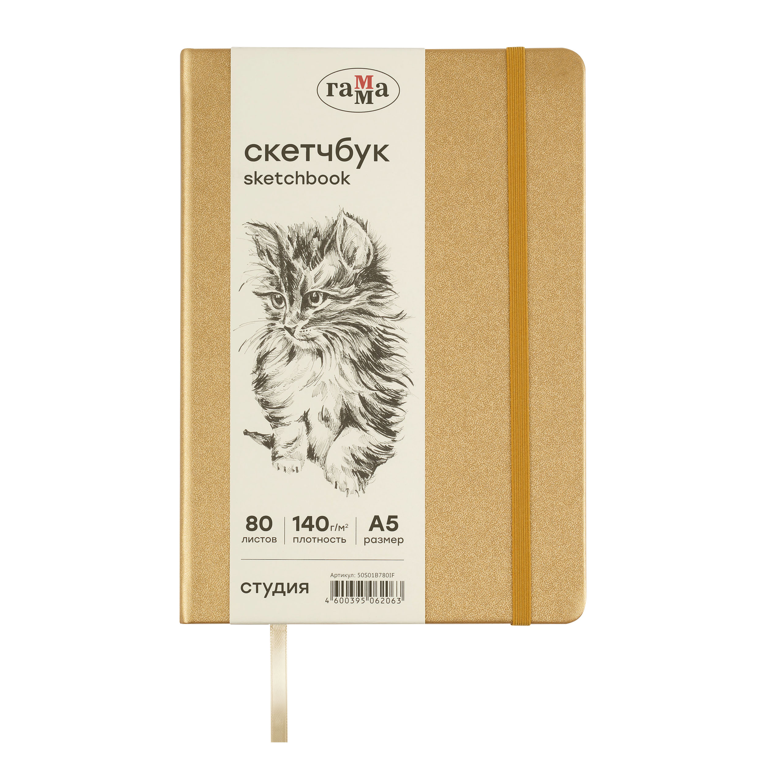 Скетчбук 80л., А5 Гамма "Студия", золото, твердая обложка, на резинке, слоновая кость, 140г/м2 50S01B780IF