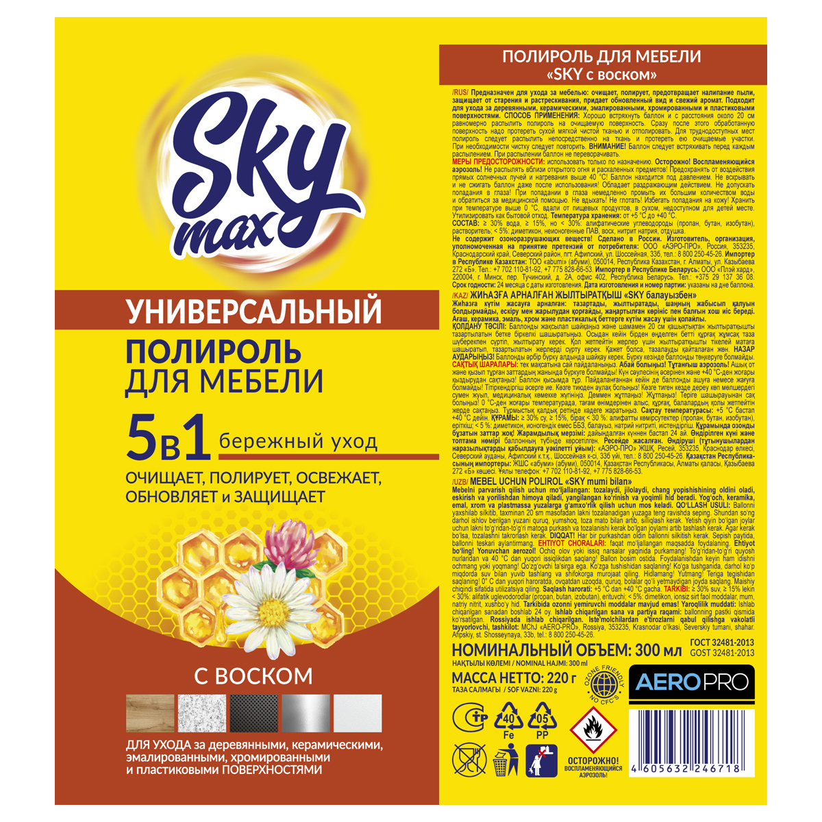 Состав: вода, НПАВ < 5%, воск, функциональные добавки, консервант.
