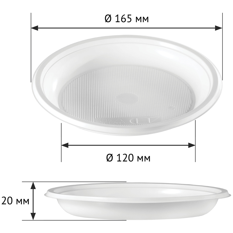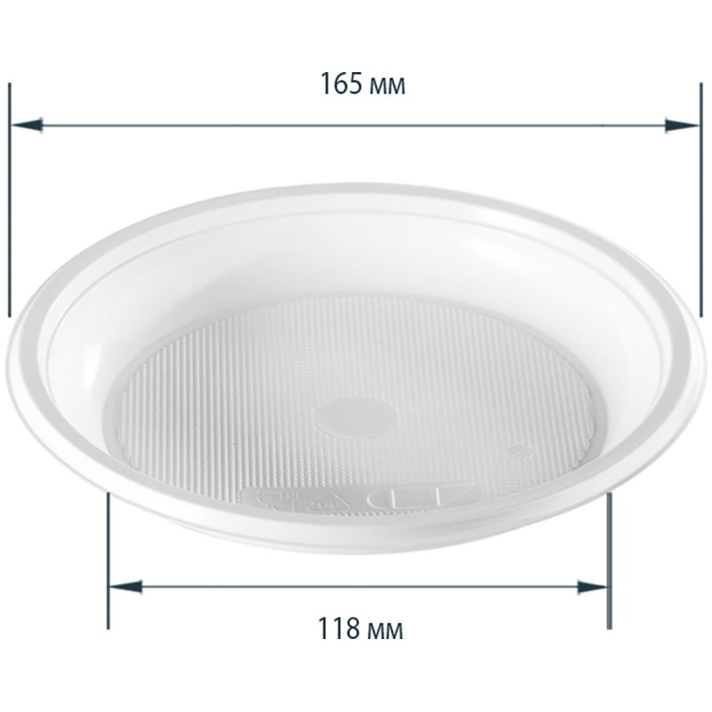 Тарелка одноразовая десертная белая из полистирола (PS), диаметром 165 мм. Температура использования -40 + 60°С.
