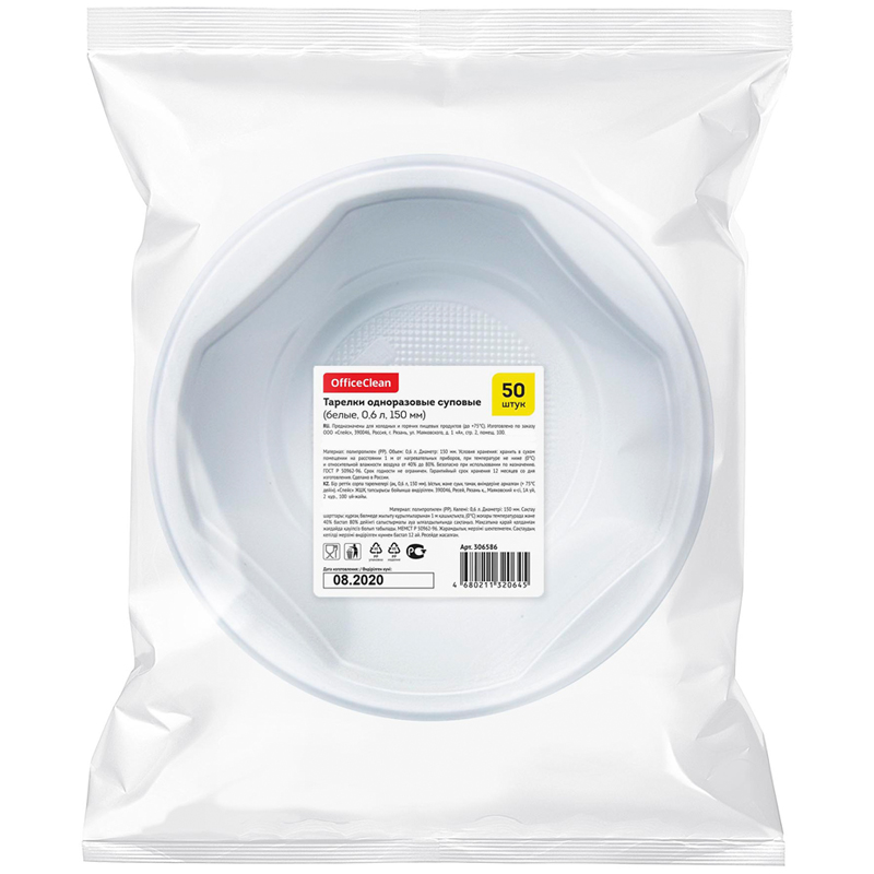 Тарелки одноразовые суповые OfficeClean изготовлены из белого полипропилена, имеют специальные ушки для удобной переноски. Одна тарелка вмещает 600 мл жидкости, при этом сама практически невесомая. Верхний диаметр - 150 мм. Нижний диаметр - 88 мм. Высота - 75 мм. Одноразовые суповые тарелки широко используются в офисных столовых, образовательных и производственных учреждениях, предприятиях общественного питания, также их удобно взять на выездные мероприятия, пикники, походы и т.д.