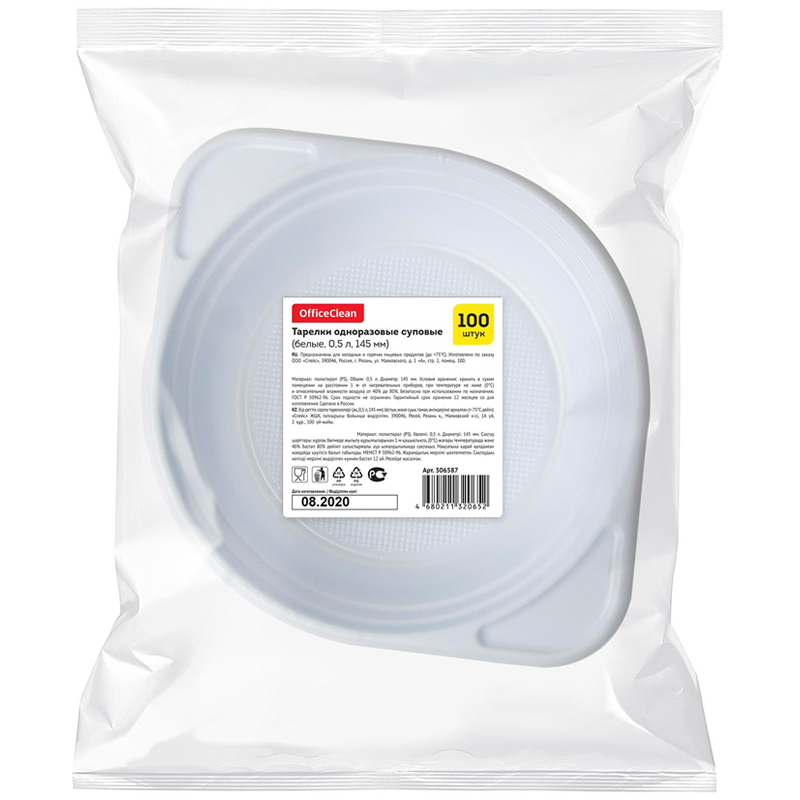 Тарелки одноразовые суповые OfficeClean изготовлены из белого полистирола, имеют специальные ушки для удобной переноски. Одна тарелка вмещает 500 мл жидкости, при этом сама практически невесомая. Верхний диаметр - 145 мм. Нижний диаметр - 108 мм. Высота - 50 мм. Одноразовые суповые тарелки широко используются в офисных столовых, образовательных и производственных учреждениях, предприятиях общественного питания, также их удобно взять на выездные мероприятия, пикники, походы и т.д.