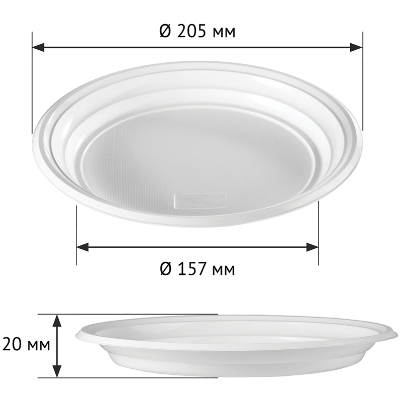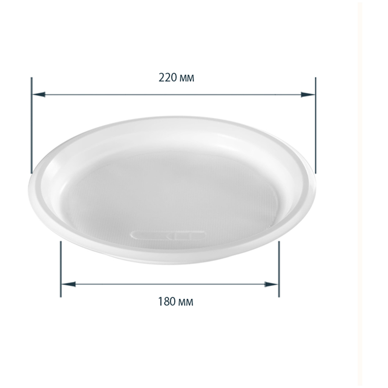 Тарелка одноразовая белая из полистирола (PS), диаметром 205 мм. Температура использования -40 + 60°С.