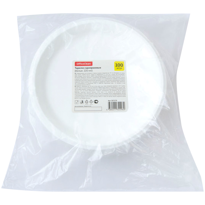 Тарелки одноразовые OfficeClean изготовлены из высококачественного полистирола, имеют плоскую, круглую форму. Предназначены для сервировки горячих (до +70 °С) и холодных блюд, салатов и закусок. Не предназначены для использования в микроволновых печах. Такие тарелки широко используются в офисных столовых, образовательных и производственных учреждениях, предприятиях общественного питания, также их удобно взять на выездные мероприятия, пикники, походы и т.д. После использования одноразовые тарелки не нужно мыть. Их можно легко утилизировать или отправить на переработку. Небольшой вес и минимальный объем удобны для транспортировки и хранения одноразовой посуды. Размер тарелок: Диаметр: 205 мм, Высота: 23 мм. Количество секций: 2 шт. Поставляются в комплекте 100шт.