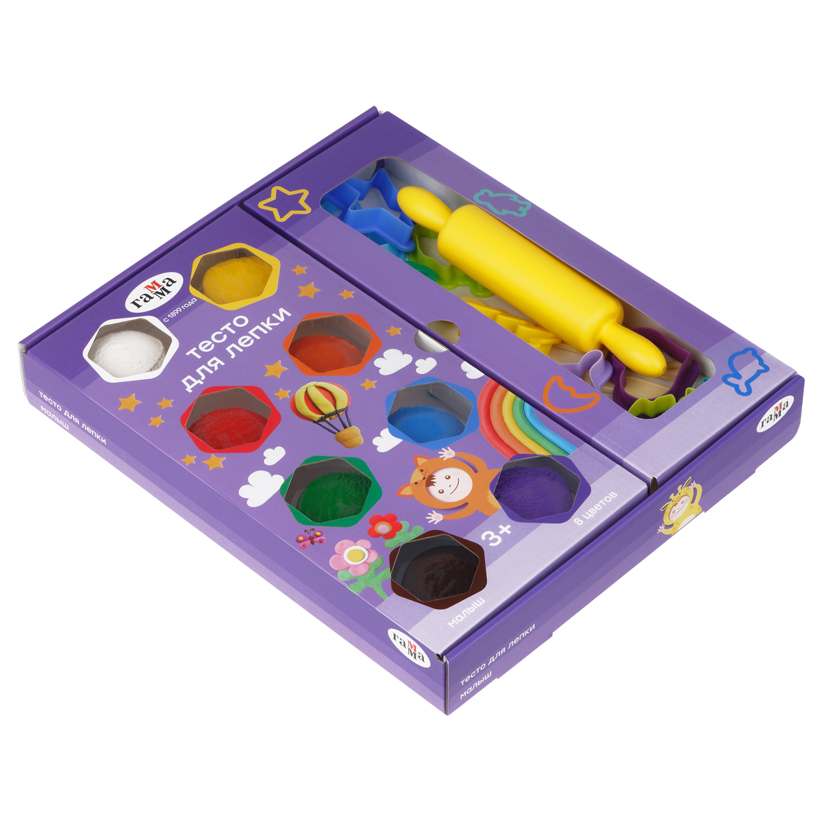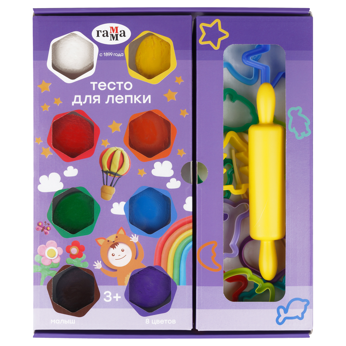 Набор теста для лепки ГАММА с пластиковыми аксессуарами (формочками, скалкой, стеком для лепки) на основе натуральных компонентов идеально подойдет для первых творческих работ: развивает мелкую моторику, усидчивость, координацию движений, пространственное и творческое мышление. Масса безопасна и нетоксична, не пачкает руки. У теста мягкая текстура – оно легко разминается и хорошо держит форму. Цвета можно смешивать между собой, чтобы получить новые оттенки. В набор входит: 8 баночек теста для лепки, 12 формочек, скалка и стек для лепки. Вес теста в одной баночке – 60 г. Увеличенный объем теста каждого цвета позволит ребенку создавать гораздо больше поделок и развивать свою фантазию, а формочки, входящие в комплект, будут в этом помогать. Удобная коробочка позволит хранить тесто и аксессуары аккуратно в одном месте. Тесто застывает за 24–72 часа, а готовой поделкой можно играть. Тесто не предназначено для еды