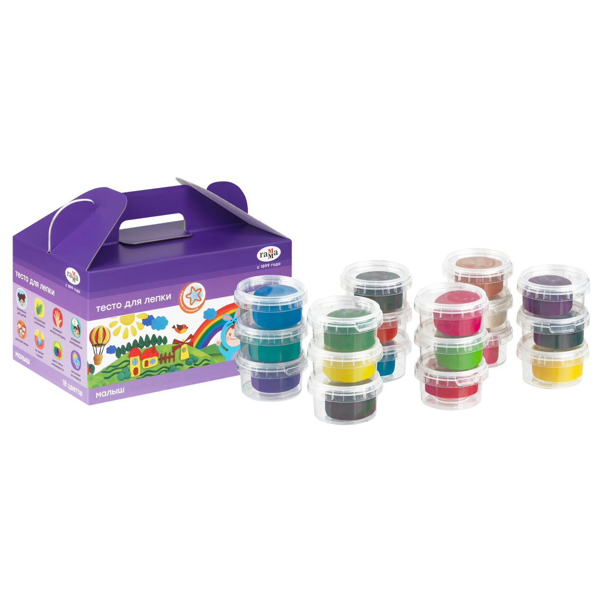 Набор теста для лепки ГАММА в подарочной упаковке - сундучке состоит из 18 цветов по 60 грамм. Увеличенный объем теста каждого цвета позволит ребенку создавать гораздо больше поделок и развивать свою фантазию. Удобная коробочка позволит хранить тесто аккуратно после работы в одном месте. Тесто на основе натуральных компонентов сертифицировано для детей от 1 года. Идеально подходит для первых творческих работ: развивает мелкую моторику, усидчивость, координацию движений, пространственное и творческое мышление. Масса безопасна и нетоксична, не пачкает руки. У теста мягкая текстура – оно легко разминается и хорошо держит форму. Цвета можно смешивать между собой, чтобы получить новые оттенки. Тесто застывает за 24–72 часа, а готовой поделкой можно играть. Тесто не предназначено для еды.