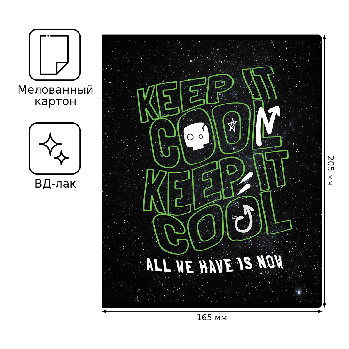 Тетрадь BG серии Never stop в линию. Формат А5. Вид крепления – скрепка. Внутренний блок – это 60 листов, офсетная бумага плотностью 65 г/м². Обложка выполнена из мелованного картона. Тетради с дерзким дизайном отлично подходят для выполнения домашних и контрольных работ. • Кол-во листов: 60 л; • Линовка: линия; • Белизна: 100%; • Плотность блока: 65 г/м²; • Крепление: скрепка; • Материал обложки: мелованный картон.