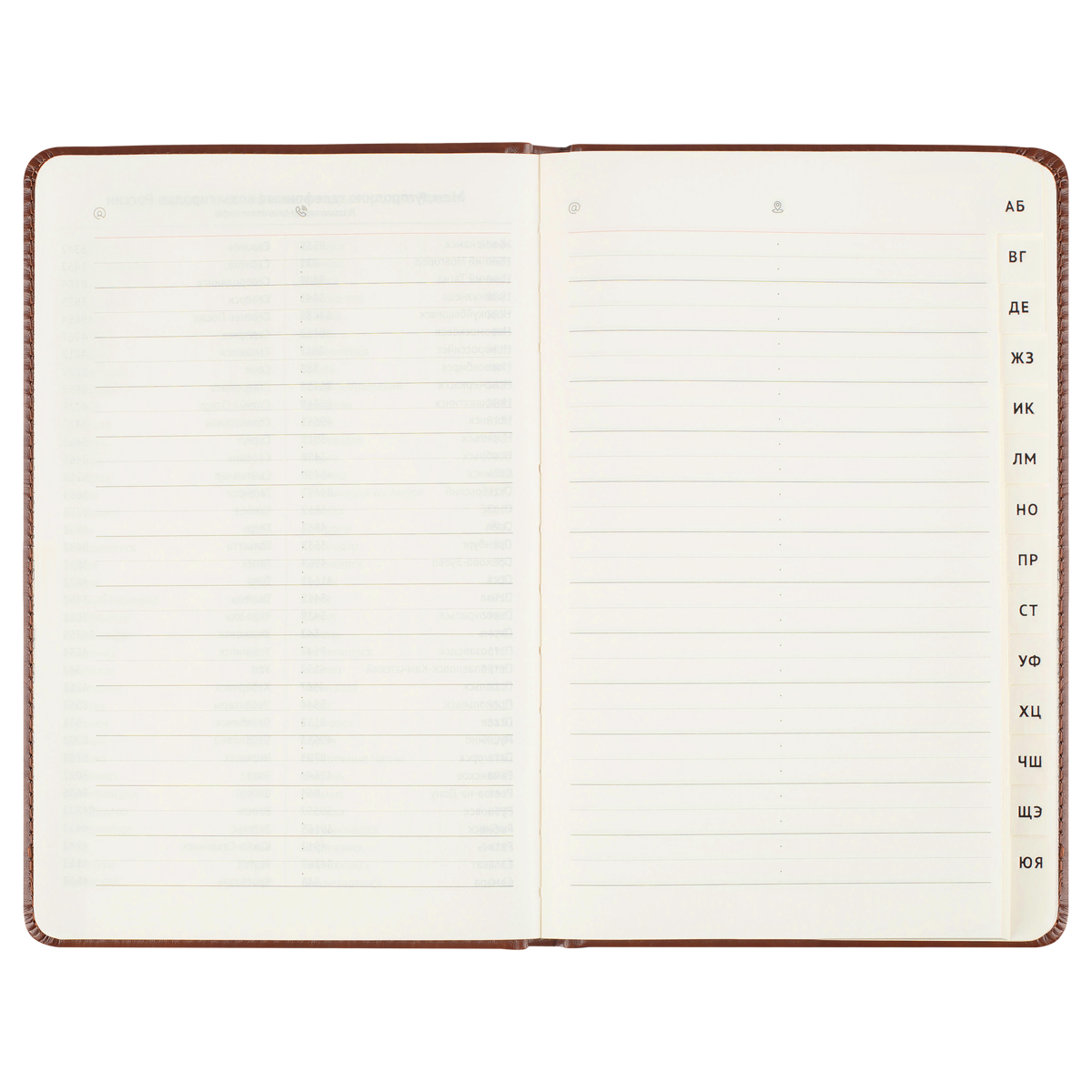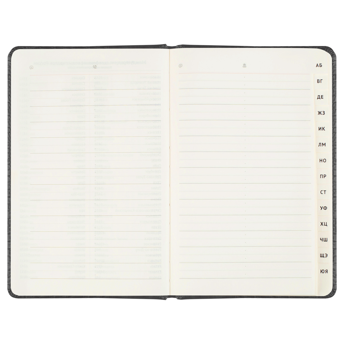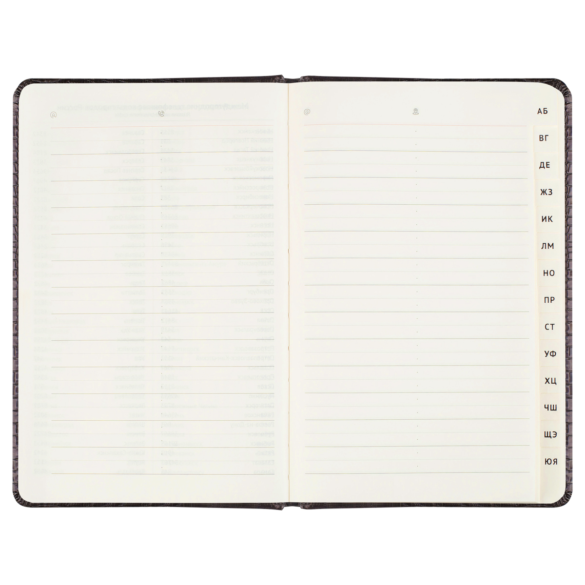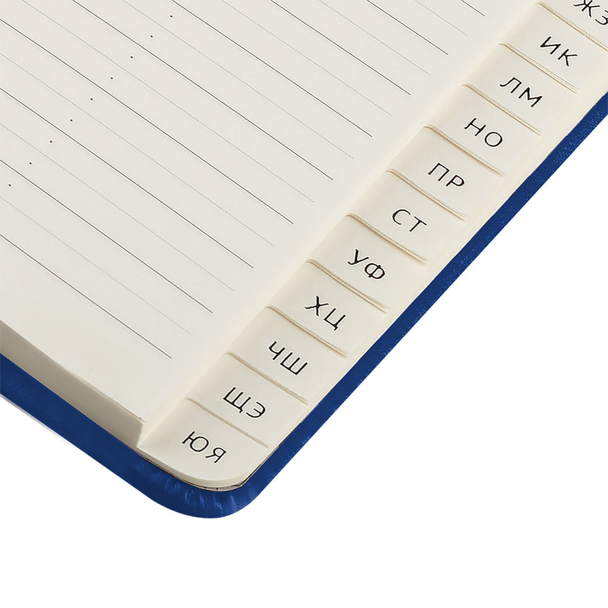 Телефонная книга формата А5 с алфавитной вырубкой. Оптимальный и удобный для повседневного использования размер. Будет незаменимым помошником как дома, так и в офисе.