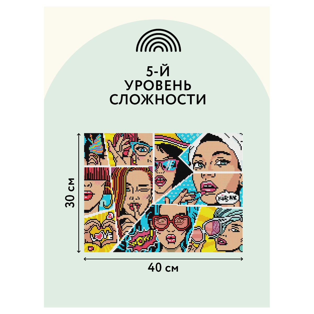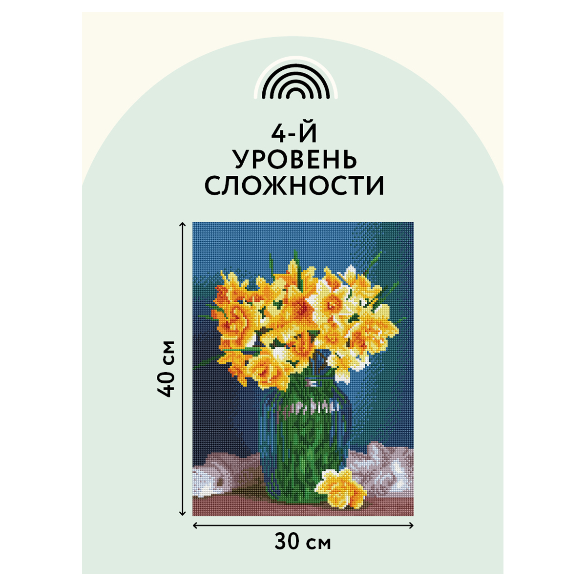 Алмазная мозаика - увлекательное занятие, которое дарит умиротворение и гармонию, развивает усидчивость, аккуратность и внимательность. Вы сможете создать своими руками оригинальную, мерцающую на свету картину. В набор входят: • холст с цветной схемой картины, покрытый клеевым слоем и защищенный специальной пленкой; • квадратные акриловые кристаллы. Каждый цвет упакован в удобный пакет с замком-застежкой; • металлический пинцет для захватывания кристаллов; • пластиковый стилус с 2 наконечниками, который позволяет захватывать от 1 до 3 кристаллов; • силиконовая подушечка; • лоток для кристаллов. Количество цветов: 30 Уровень сложности: 5