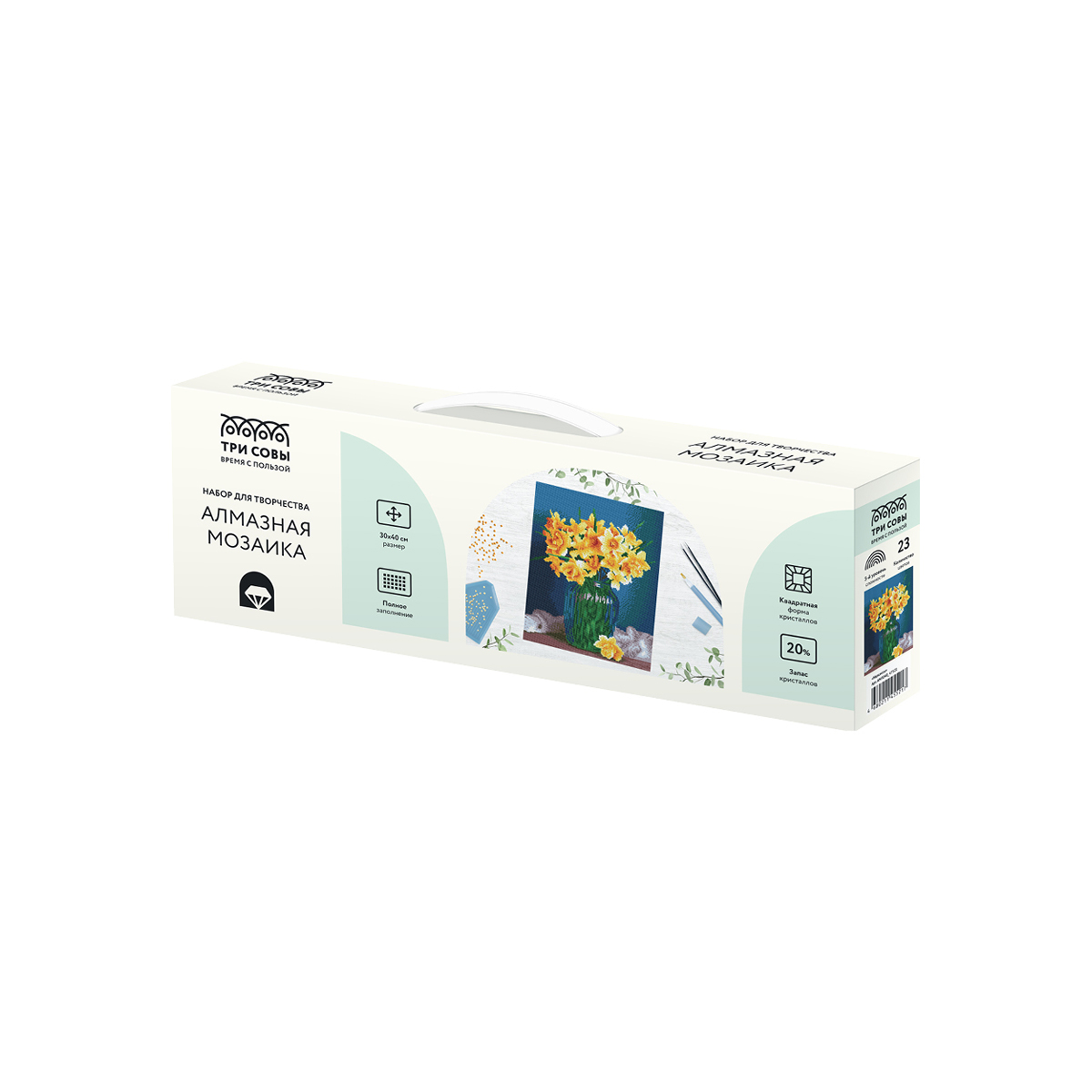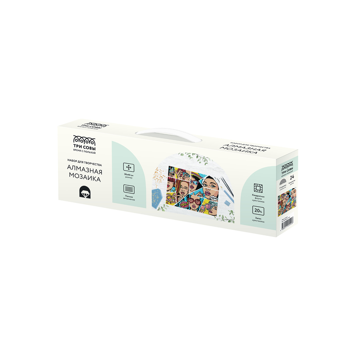 Создание постера из алмазной мозаики «ТРИ СОВЫ» – увлекательное занятие, которое развивает мелкую моторику, усидчивость и цветовосприятие ребенка. Выполнение работы не требует специальных навыков. Круглые кристаллы выкладываются поверх изображения со схемой на уже нанесенный клеевой слой. Состав набора: - основа с клеевым слоем (19,7*14,7 см); - кристаллы в пакетиках; - лоток для кристаллов; - стилус; - силиконовая подушечка. Созданный своими руками постер с алмазной мозаикой, станет прекрасным подарком для родных или интересным украшением комнаты! «ТРИ СОВЫ» – время с пользой!