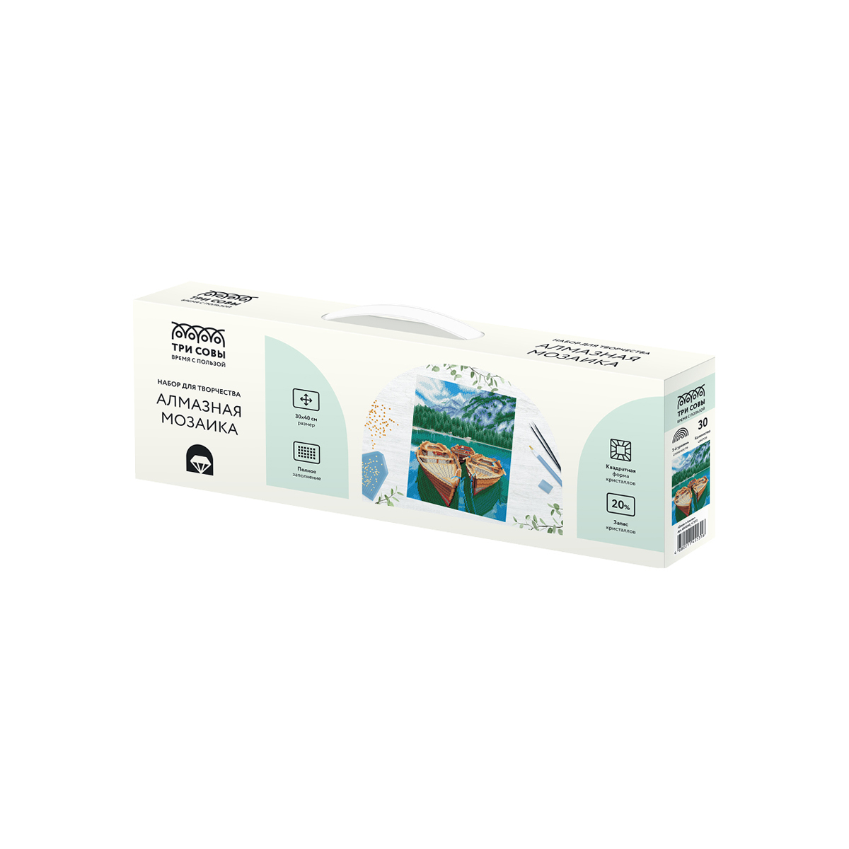 Создание картины из алмазной мозаики «ТРИ СОВЫ» – увлекательное занятие, которое дарит умиротворение и гармонию, развивает усидчивость, аккуратность и внимательность. Вы сможете создать своими руками оригинальную, мерцающую на свету картину. В набор «Озеро в Альпах» входят: • холст с цветной схемой картины, покрытый клеевым слоем и защищенный специальной плёнкой; • квадратные акриловые кристаллы (каждый цвет упакован в удобный пакет с замком-застежкой); • металлический пинцет для захватывания кристаллов; • пластиковый стилус с 2 наконечниками, который позволяет захватывать от 1 до 3 кристаллов; • силиконовая подушечка; • лоток для кристаллов. «ТРИ СОВЫ» – время с пользой! • Тематика: пейзаж; • Количество цветов: 30; • Уровень сложности: 5.