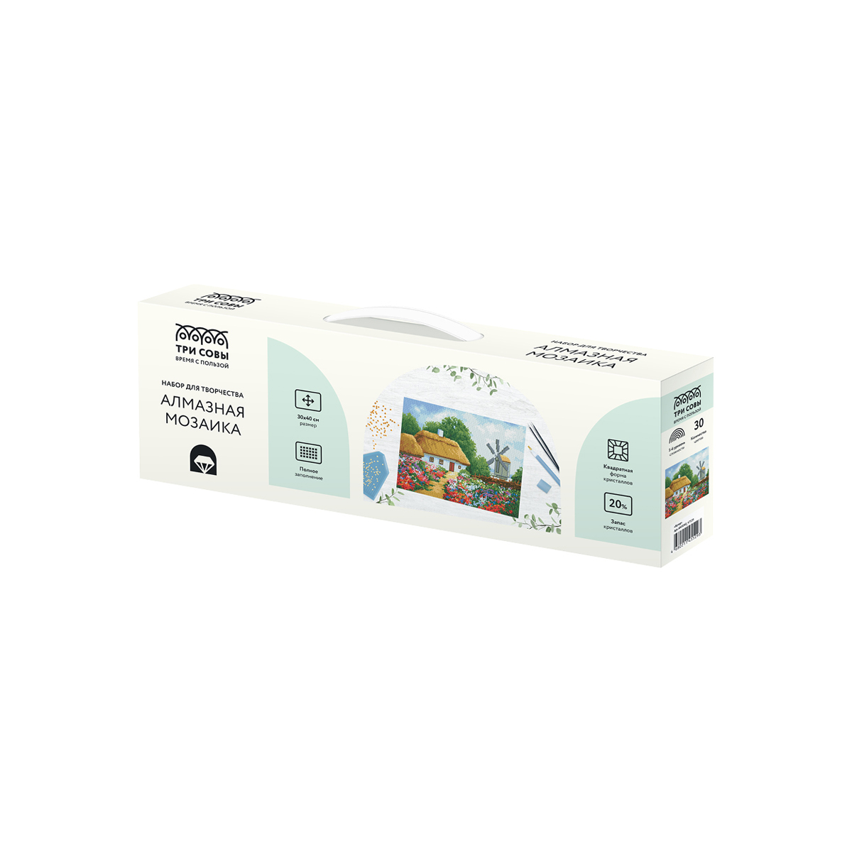 Создание картины из алмазной мозаики «ТРИ СОВЫ» – увлекательное занятие, которое дарит умиротворение и гармонию, развивает усидчивость, аккуратность и внимательность. Вы сможете создать своими руками оригинальную, мерцающую на свету картину. В набор «Хутор» входят: • холст с цветной схемой картины, покрытый клеевым слоем и защищенный специальной плёнкой; • квадратные акриловые кристаллы (каждый цвет упакован в удобный пакет с замком-застежкой); • металлический пинцет для захватывания кристаллов; • пластиковый стилус с 2 наконечниками, который позволяет захватывать от 1 до 3 кристаллов; • силиконовая подушечка; • лоток для кристаллов. «ТРИ СОВЫ» – время с пользой! • Тематика: пейзаж; • Количество цветов: 30; • Уровень сложности: 5.
