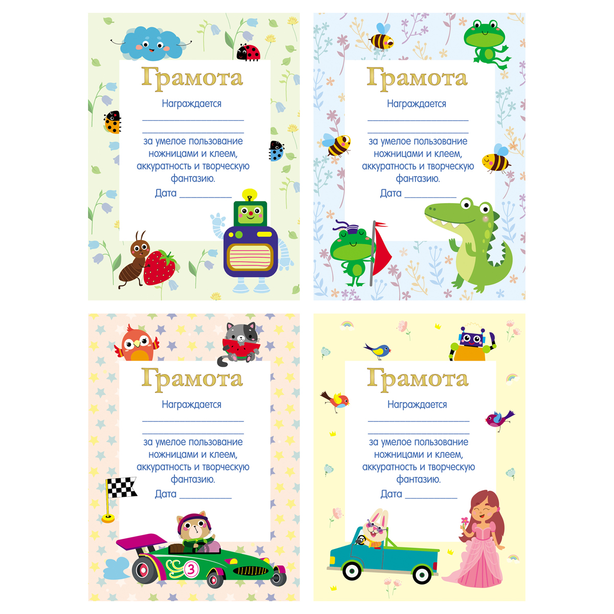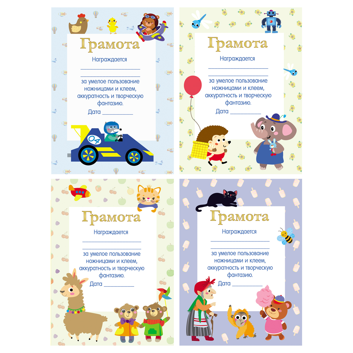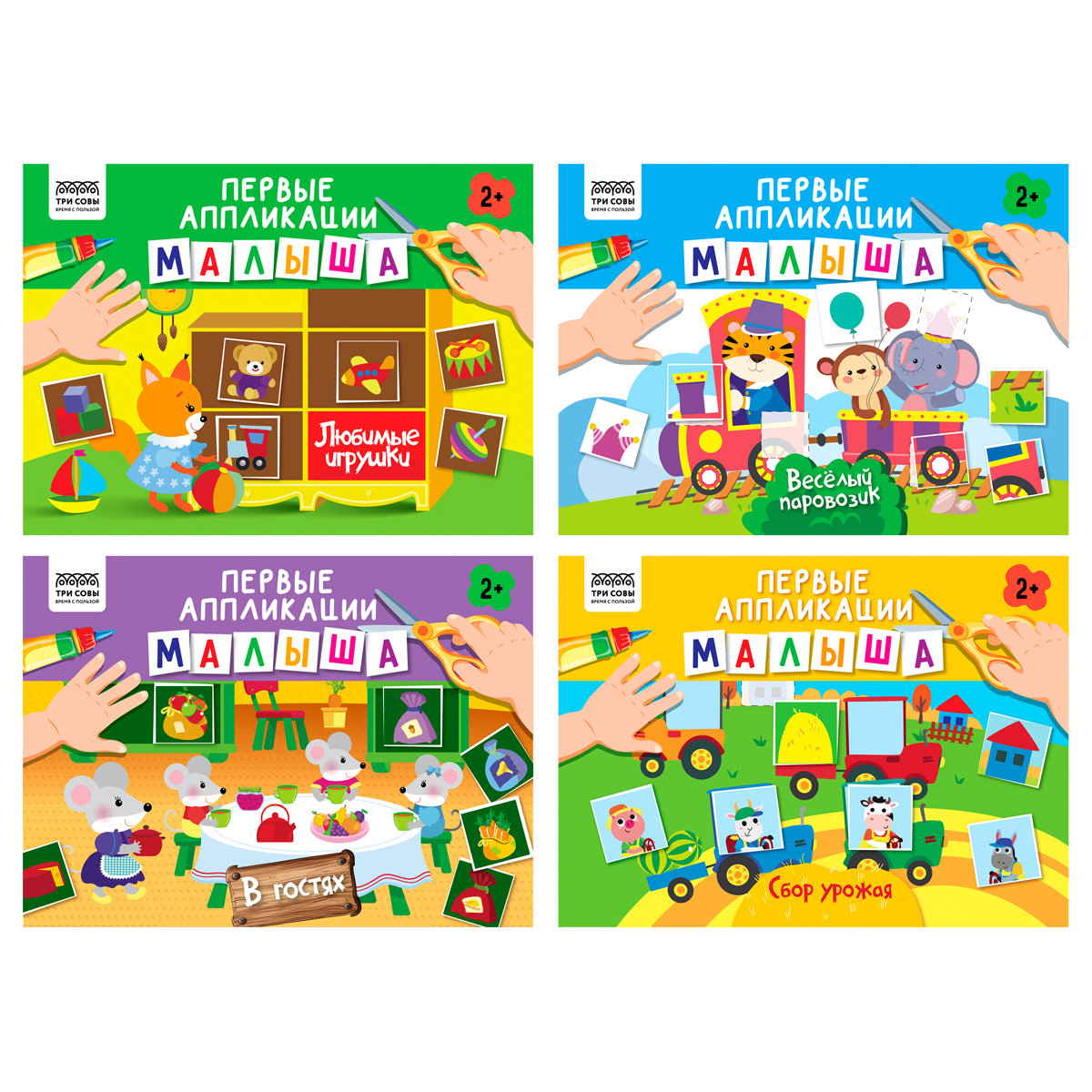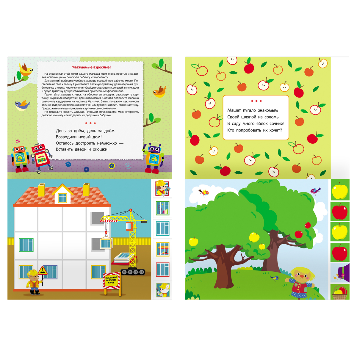 Аппликации "Первые аппликации малыша" - это очень простые и очень красивые аппликации для ребёнка. Ребёнок в игровой форме научиться правильно держать ножницы, вырезать по прямой линии и приклеивать отрезанные квадратики на сюжетную картинку, подключая своё воображение, фантазию и логику. После того, как малыш выполнил все задания, в конце книжки есть грамота. Обязательно похвалите ребёнка и вручите ему грамоту за успешное выполнение заданий. Готовыми аппликациями можно украсить детскую комнату или подарить их дедушке и бабушке. • Формат: А4; • Количество страниц: 16.