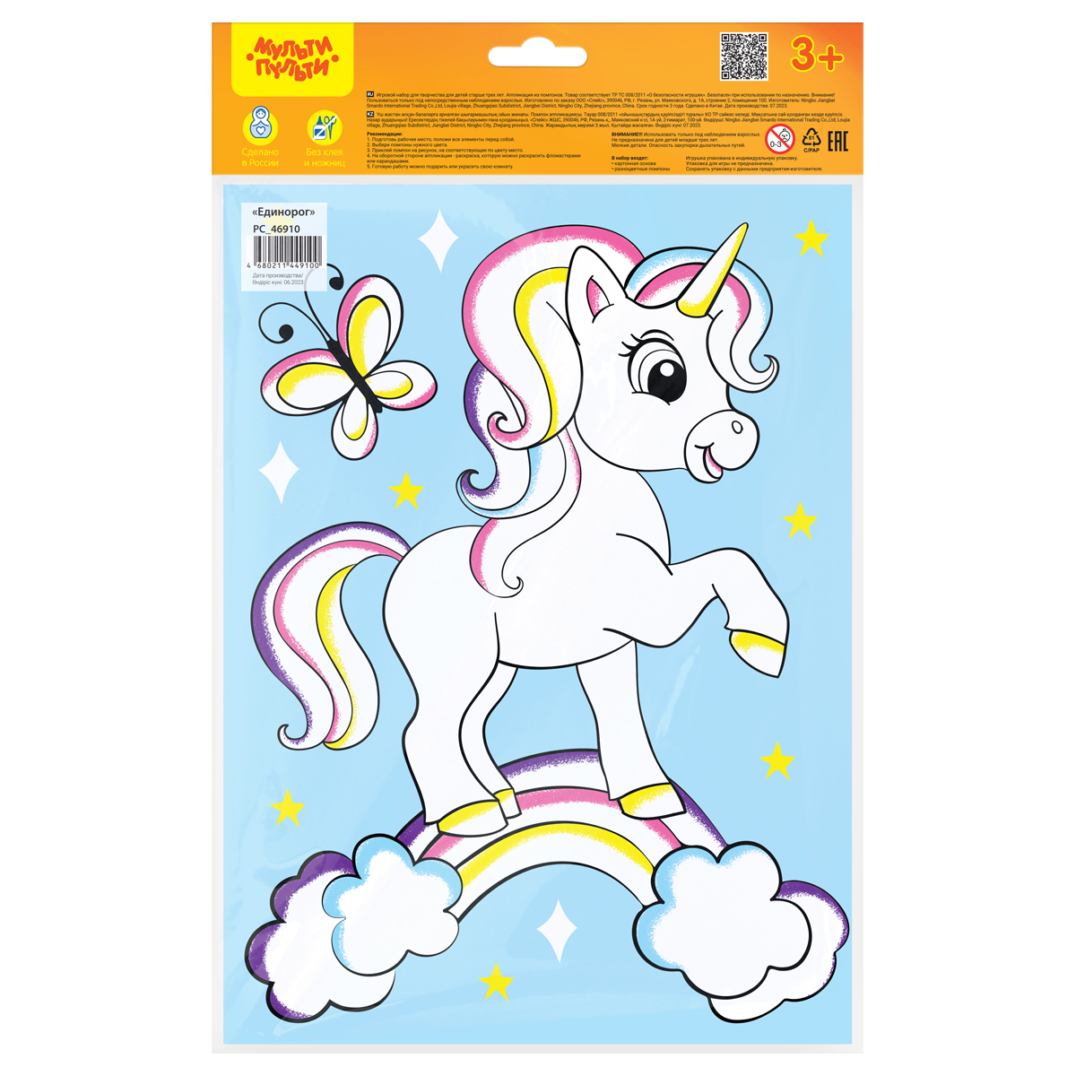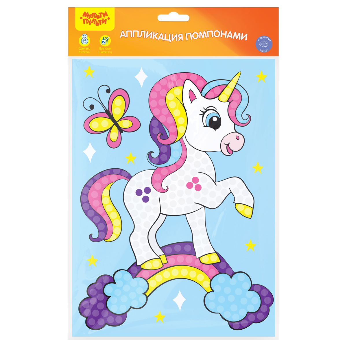 Аппликация из помпонов от бренда «Мульти-Пульти» «Единорог» предназначена для мальчиков и девочек старше трёх лет. В состав набора входит картонная основа размера 21*28,5 см. Поделка своими руками способствует развитию творческого потенциала и воображения ребенка. Кроме того, столь занимательный процесс оттачивает терпение и усидчивость – качества, которым важно уделять одну из главных ролей в воспитании подрастающего поколения. Готовую работу можно будет подарить близким, что особенно актуально в период новогодних праздников. С аппликациями из помпонов от бренда «Мульти-Пульти» «Единорог» познавать окружающий мир детям станет ещё интереснее! • Тип аппликации: аппликация из помпонов; • Размер: 21*28,5см; • Материал для аппликации: помпоны; • Основа: картон.