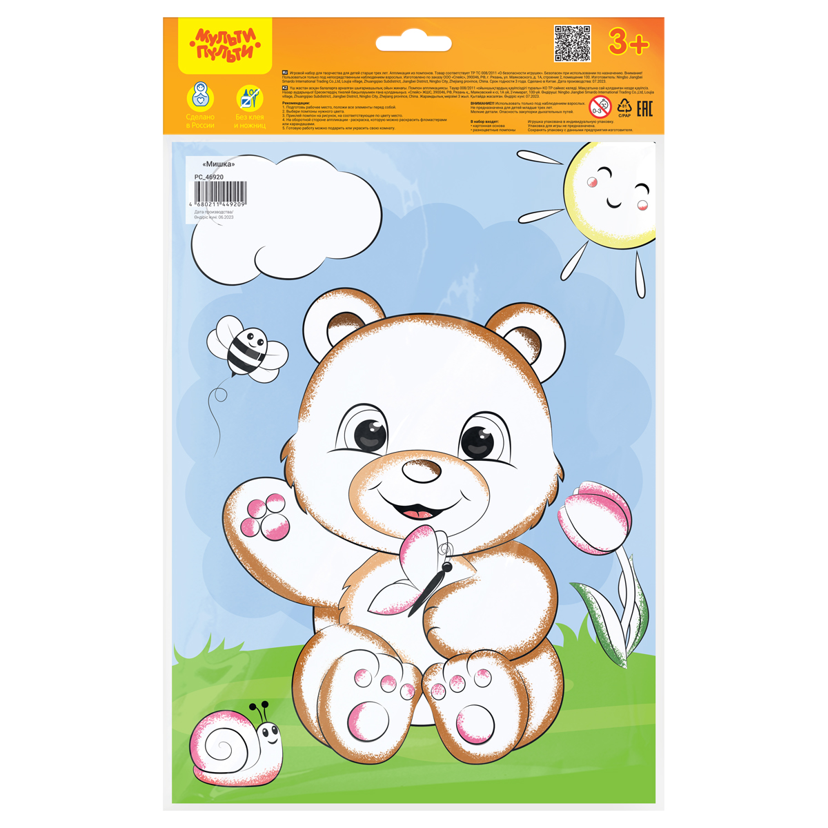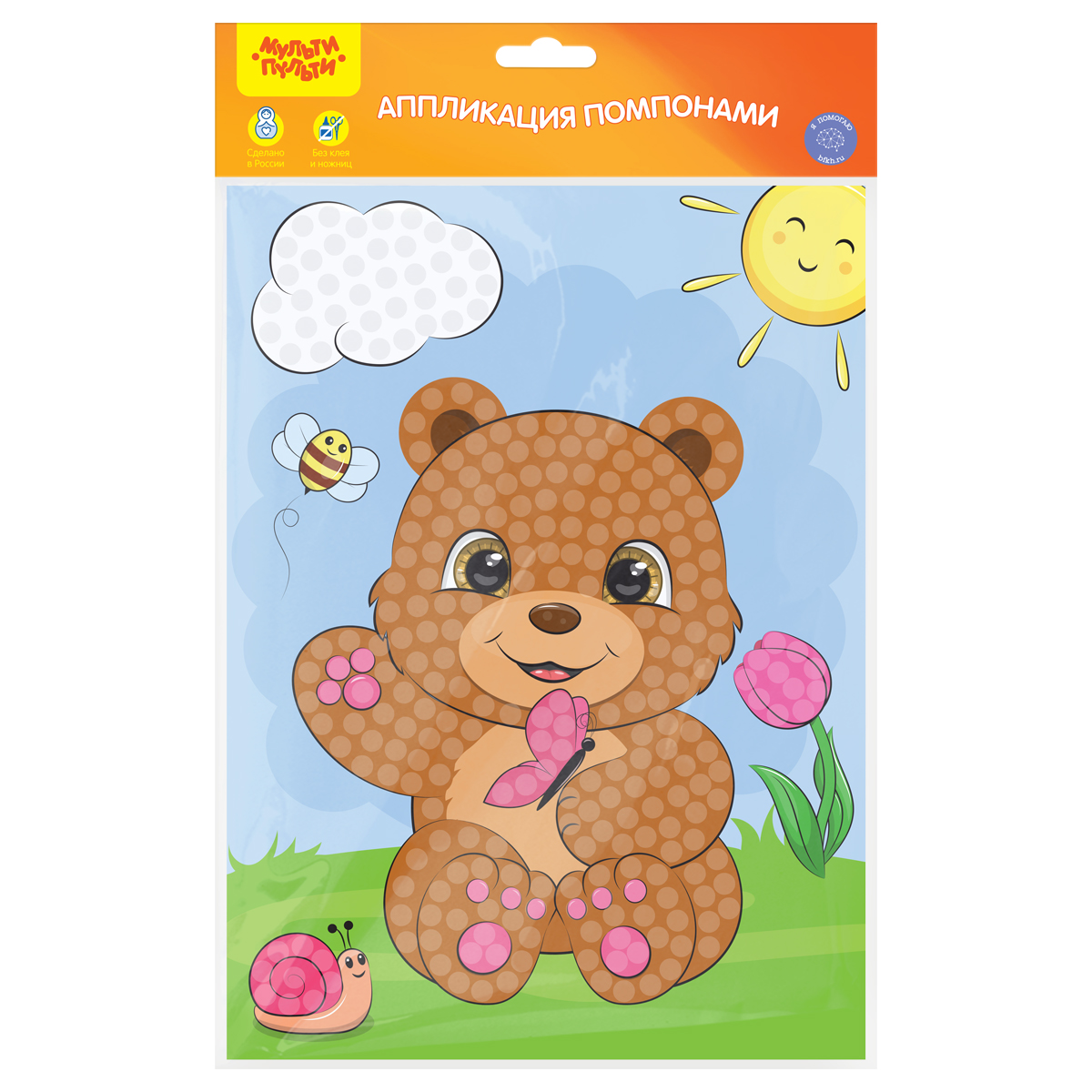 Аппликация из помпонов от бренда «Мульти-Пульти» «Мишка» предназначена для мальчиков и девочек старше трёх лет. В состав набора входит картонная основа размера 21*28,5 см. Подделка своими руками способствует развитию творческого потенциала и воображения ребенка. Кроме того, столь занимательный процесс оттачивает терпение и усидчивость – качества, которым важно уделять одну из главных ролей в воспитании подрастающего поколения. Готовую работу можно будет подарить близким, что особенно актуально в период новогодних праздников. С аппликациями из помпонов от бренда «Мульти-Пульти» «Мишка» познавать окружающий мир детям станет ещё интереснее! • Тип аппликации: аппликация из помпонов; • Размер: 21*28,5см; • Материал для аппликации: помпоны; • Основа: картон.