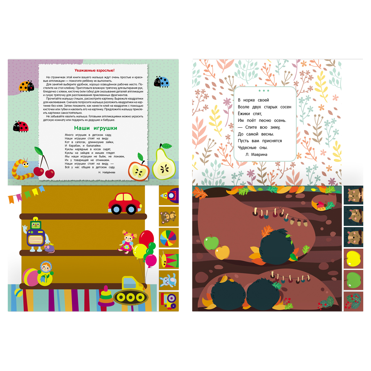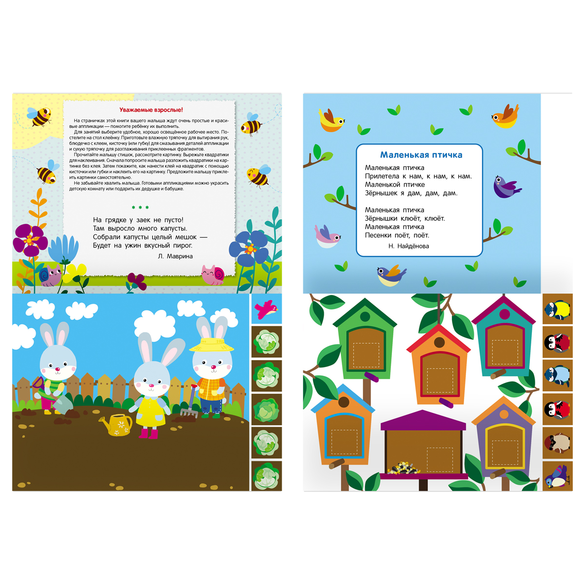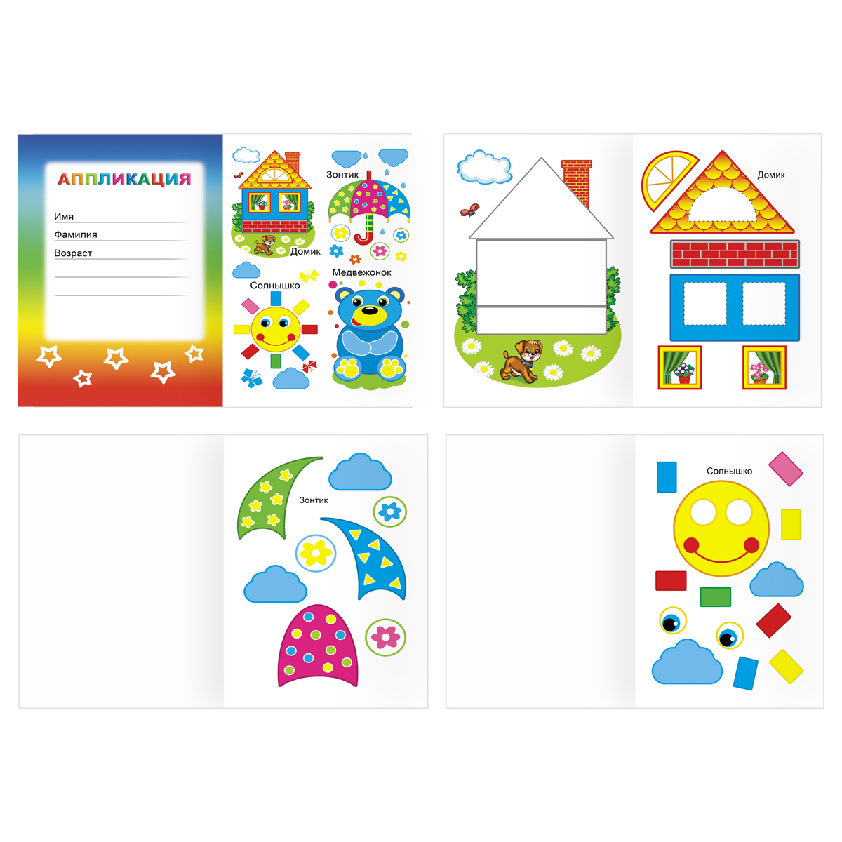 Красочная аппликация поможет Вашему ребёнку развить моторику рук, воображение, сообразительность, эстетический вкус и конструктивное мышление. Совместное занятие взрослых и ребёнка позволит весело и с пользой провести время. Готовую аппликацию ребёнок с радостью сможет подарить близким и друзьям. Формат А5. Количество листов -6.