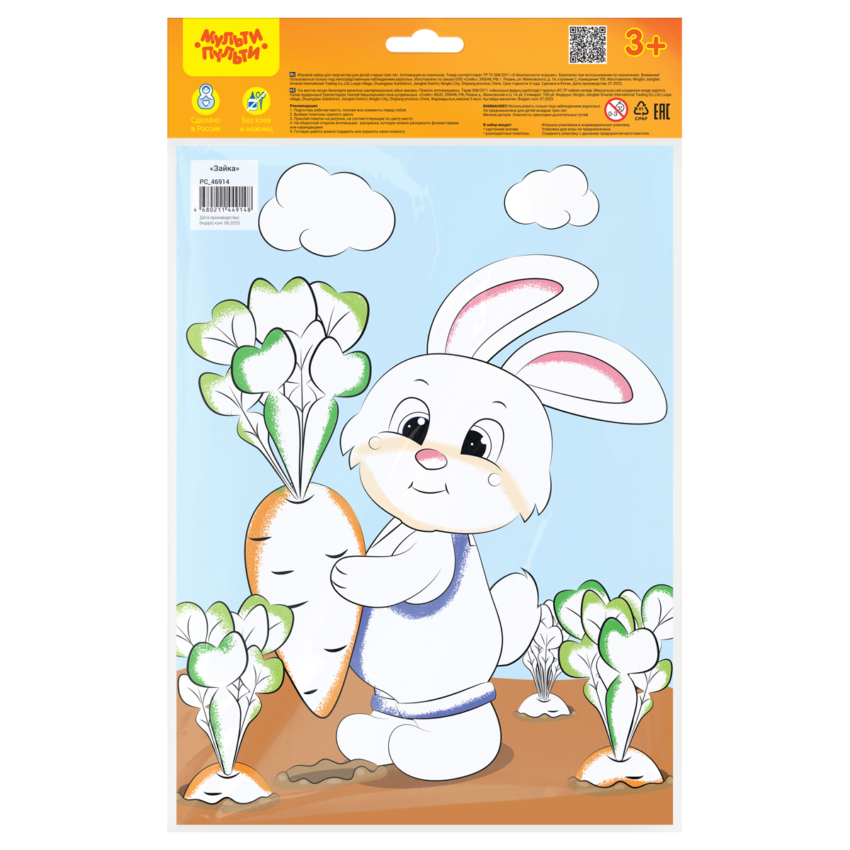 Аппликация из помпонов от бренда «Мульти-Пульти» «Зайчик» предназначена для мальчиков и девочек старше трёх лет. В состав набора входит картонная основа размера 21*28,5 см. Подделка своими руками способствует развитию творческого потенциала и воображения ребенка. Кроме того, столь занимательный процесс оттачивает терпение и усидчивость – качества, которым важно уделять одну из главных ролей в воспитании подрастающего поколения. Готовую работу можно будет подарить близким, что особенно актуально в период новогодних праздников. С аппликациями из помпонов от бренда «Мульти-Пульти» «Зайчик» познавать окружающий мир детям станет ещё интереснее! • Тип аппликации: аппликация из помпонов; • Размер: 21*28,5см; • Материал для аппликации: помпоны; • Основа: картон.