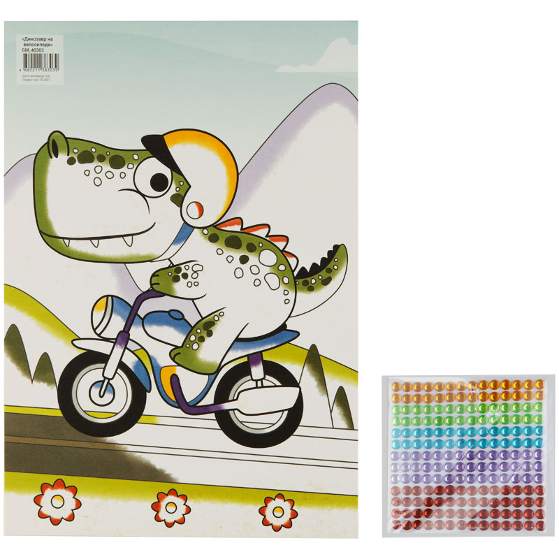 Аппликация из страз Мульти-Пульти "Динозавр на велосипеде", 21*29,5см, с раскраской, европодвес GM_4