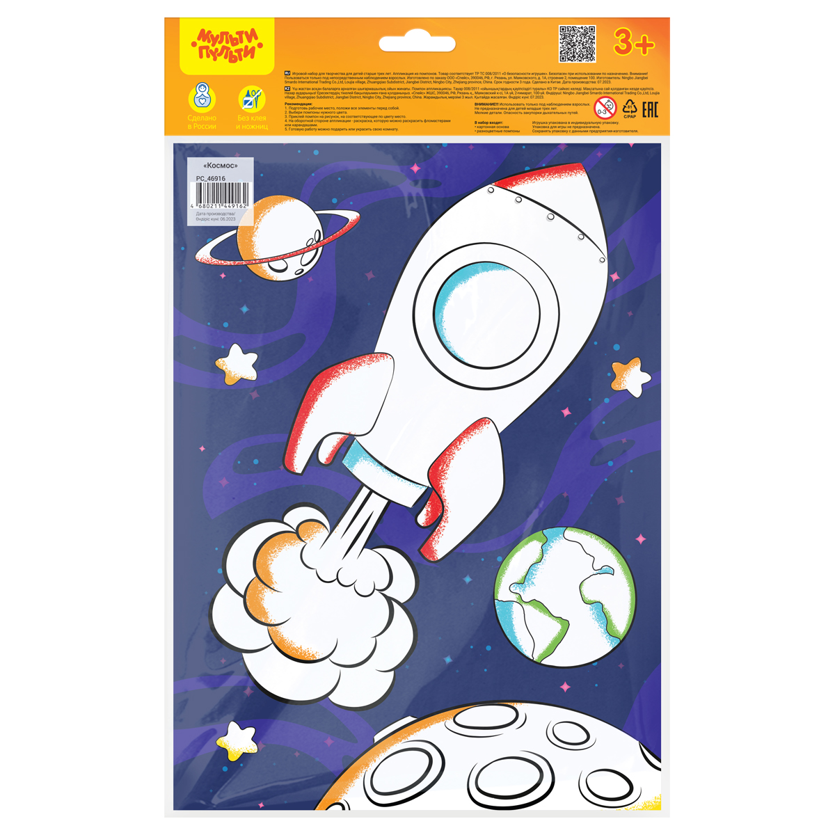 Аппликация из помпонов от бренда «Мульти-Пульти» «Космос» предназначена для мальчиков и девочек старше трёх лет. В состав набора входит картонная основа размера 21*28,5 см. Подделка своими руками способствует развитию творческого потенциала и воображения ребенка. Кроме того, столь занимательный процесс оттачивает терпение и усидчивость – качества, которым важно уделять одну из главных ролей в воспитании подрастающего поколения. Готовую работу можно будет подарить близким, что особенно актуально в период новогодних праздников. С аппликациями из помпонов от бренда «Мульти-Пульти» «Космос» познавать окружающий мир детям станет ещё интереснее! • Тип аппликации: аппликация из помпонов; • Размер: 21*28,5см; • Материал для аппликации: помпоны; • Основа: картон.