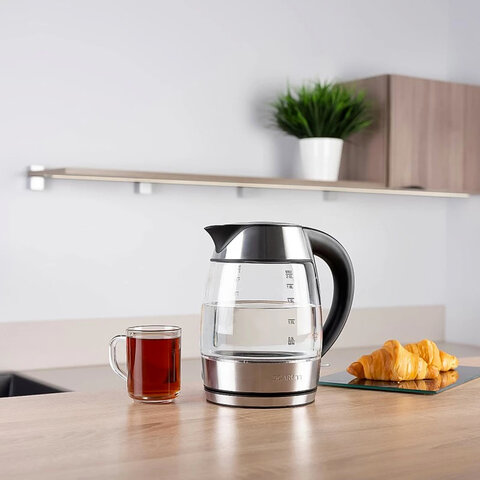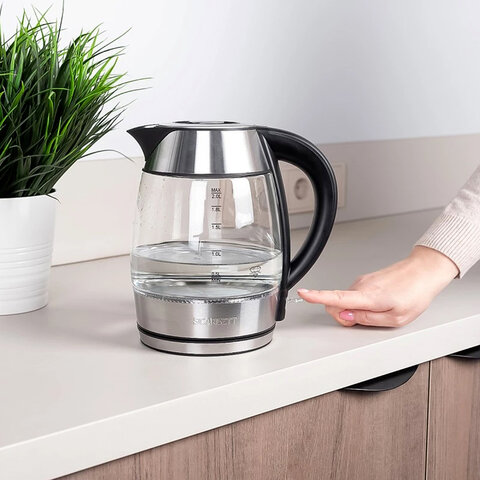Стильный чайник SCARLETT SC-EK27G88 изготовлен из натуральных материалов, он полностью сохраняет естественный вкус воды для получения самого вкусного чая. Стильный дизайн и прозрачность чайника дополняется специальной подсветкой в процессе кипячения.