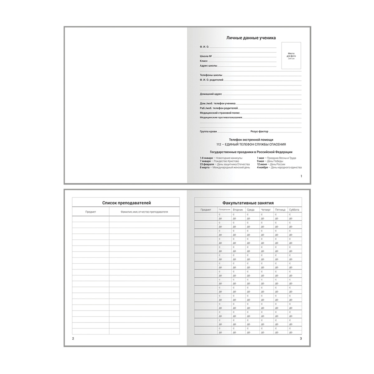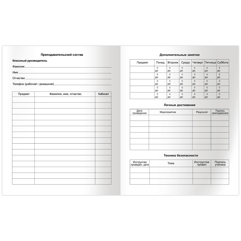 Дневник для младших классов со справочной информацией. Блок внутренний - офсет белый 100% белизны, плотностью 60г/м2, печать в 1 краску (черный цвет). Обложка - интегральный переплет (ЛАЙТ) с матовой ламинацией. На форзацах дневника есть справочная информация (дорожные знаки, правила перехода проезжей части, пожарная безопасность, взаимоотношение с людьми). Дневник содержит 14 страниц для персонализационной информации.