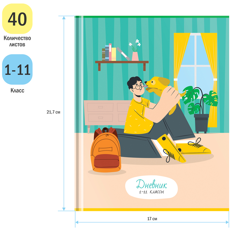 Школьный дневник ArtSpace серии Love my pet в твёрдом переплёте – главный помощник школьника для планирования распорядка дня. Количество листов внутреннего блока – 40. Дневник подойдет для учащихся с 1 по 11 класс. Плотность офсетной бумаги внутреннего блока составляет 60 г/м2. Печать блока в 1 краску. Тип скрепления – сшивка. Количество уроков – 8. Яркий и ультрасовременный дизайн дневника с рисунком обязательно понравится школьникам. Твёрдая обложка с прямыми уголками выполнена из мелованного картона с глянцевой ламинацией. Страницы дневника пронумерованы. Дневник выполняет функции журнала регистрации оценок, полученных на уроках, замечаний по поведению и прилежанию, средства общения учителей и родителей, а также является показателем успеваемости ученика. • Тип: для старших классов (1-11 классы); • Пол: универсальный; • Количество листов: 40; • Вид обложки: твёрдая; • Материал обложки: мелованный картон