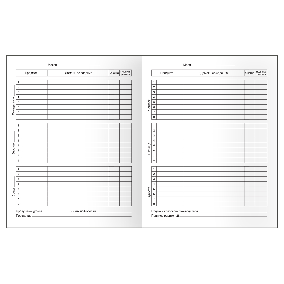 Школьный дневник BG в мягкой обложке – главный помощник в планировании учебного и свободного времени, с которым можно следить за успеваемостью. Количество листов внутреннего блока – 40. Дневник подойдет для учащихся с 1 по 11 класс. Плотность офсетной белой бумаги внутреннего блока составляет 60 г/м2, белизна – 100%. Печать блока в 1 краску (чёрный цвет). Тип скрепления – скоба. Количество уроков – 8. Мягкая обложка с прямыми уголками выполнена из мелованного картона с ВД-лаком.
