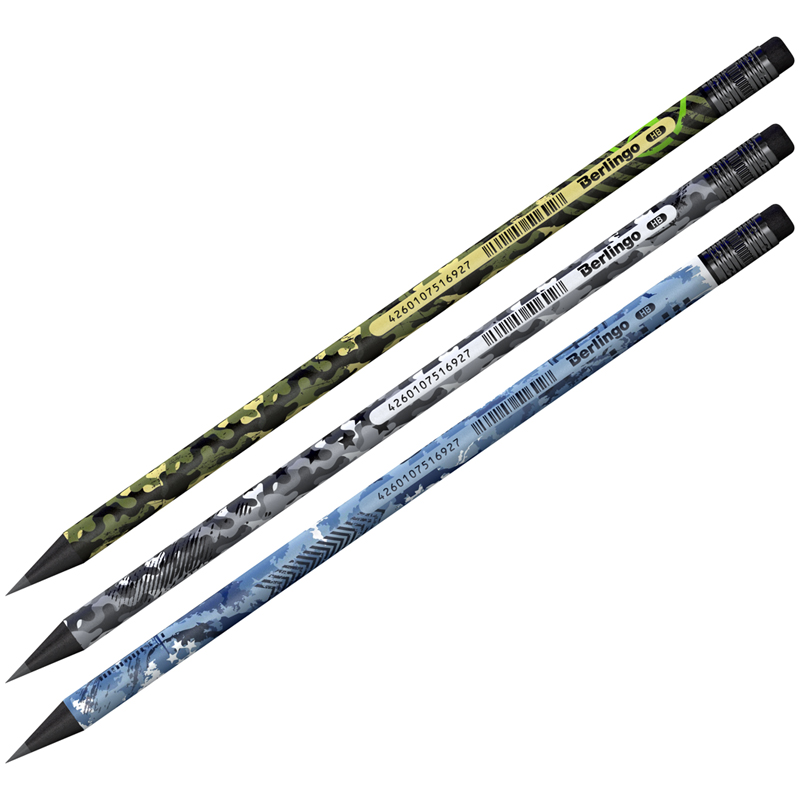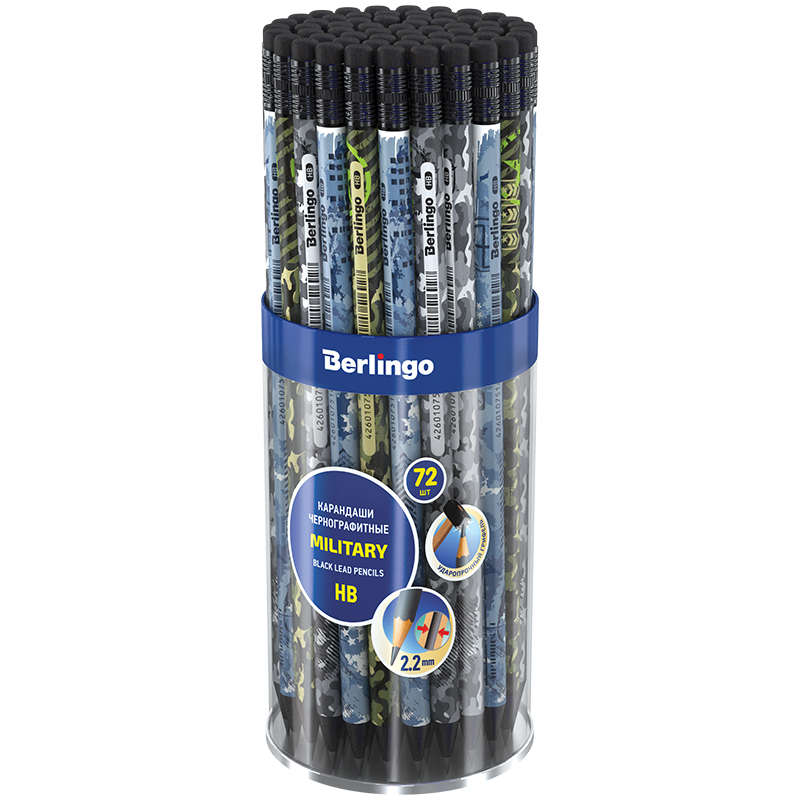 Карандаш ч/г Berlingo "Military" HB, круглый, с ластиком, черное дерево, заточен BP01103
