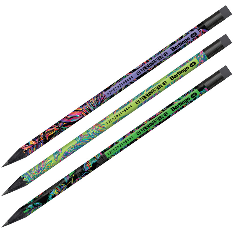 Карандаш ч/г Berlingo "Neon Paradise" HB, черное дерево, круглый, заточен., с ластиком, ассорти BP01308