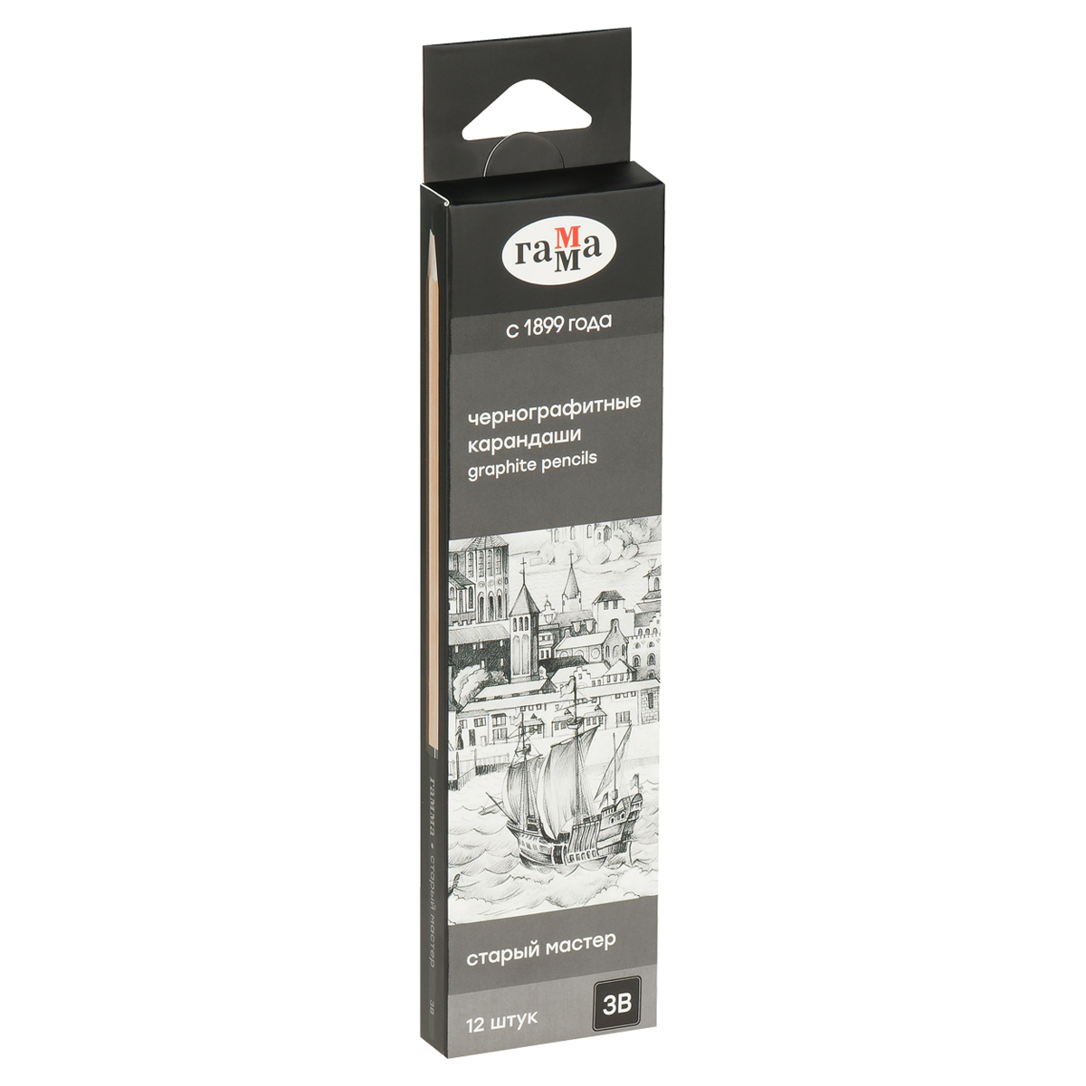 Карандаш ч/г Гамма "Старый мастер", 3B, заточен. 170322_3B