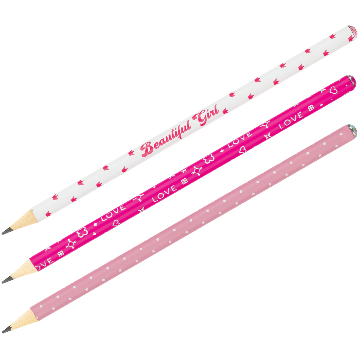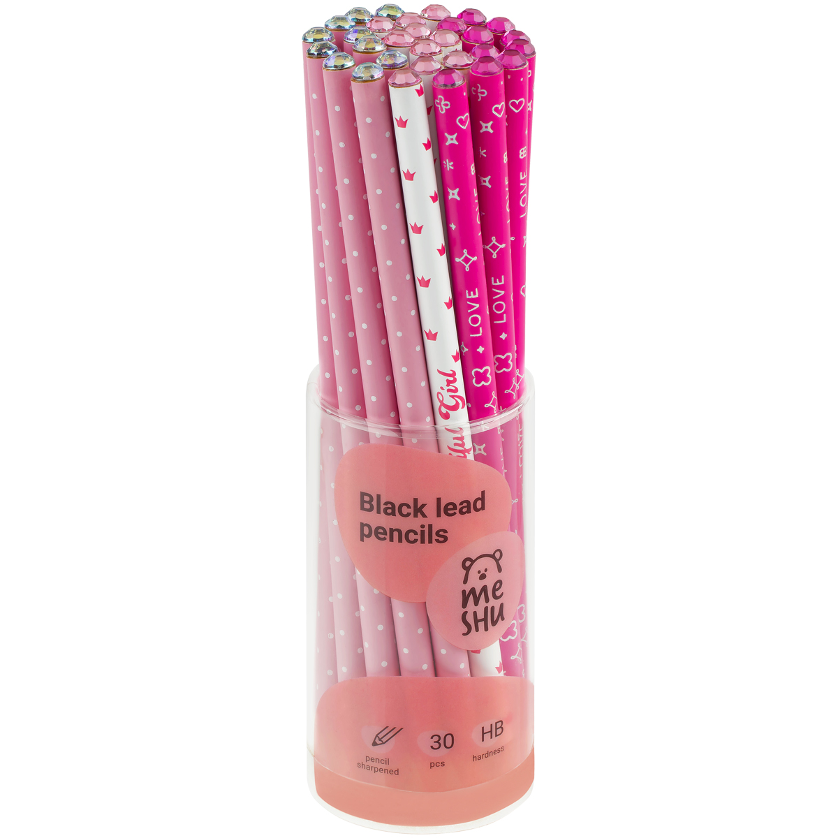 Карандаш ч/г MESHU "Sweet girl", HB, заточен., c фольгированием, стразы на топе, без ластика, ассорти, туба MS_58145