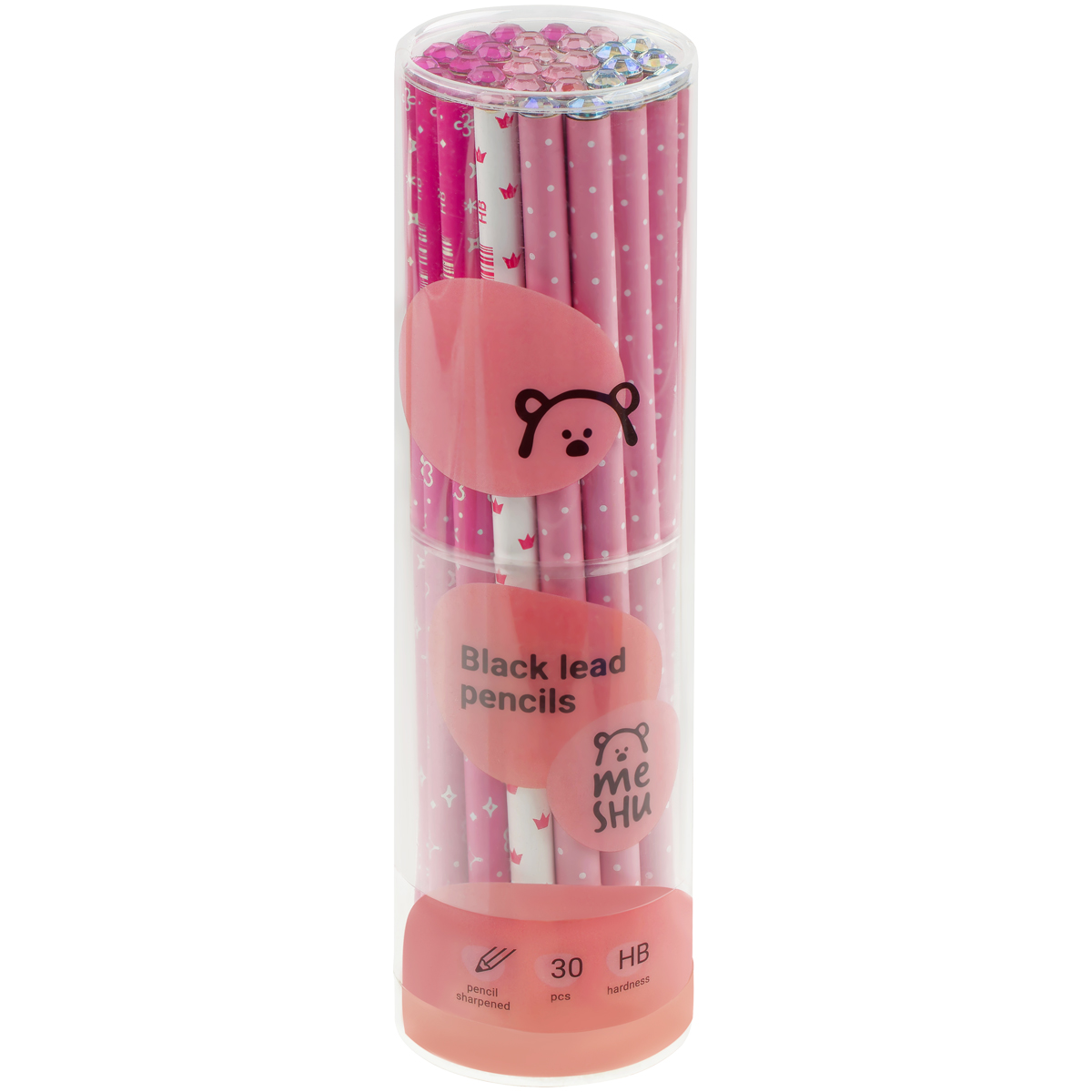 Стильные и элегантные дизайны понравятся ценителям канцелярии, которая привлекает внимание. На корпусе есть штрихкод, а на топе стразы в тон второго цвета печати на карандаше. Карандаши легко затачиваются и идеально подойдут для черчения и рисования. Письмо с карандашами MESHU мягкое и уверенное. Они заточены и уже готовы к работе.