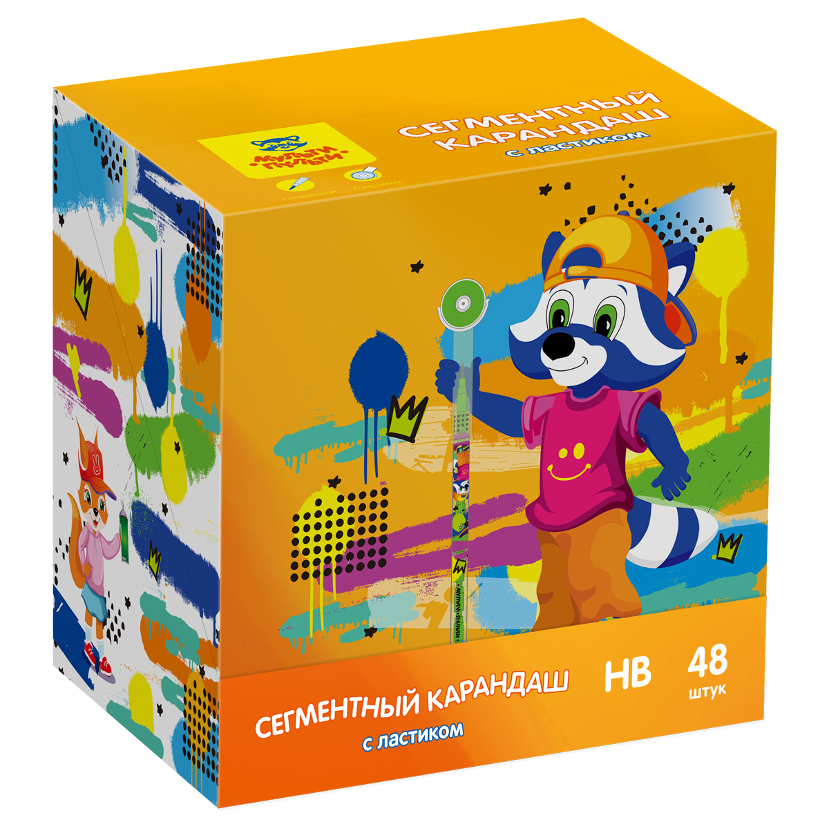 Карандаш сегментный Мульти-Пульти "Енот в городе", с ластиком, ассорти КС_53325