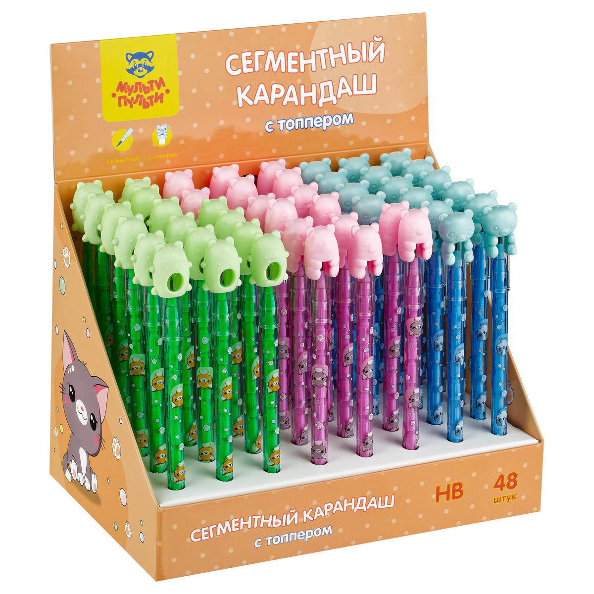 Карандаш сегментный Мульти-Пульти "Зверята", с топпером, ассорти КС_53326